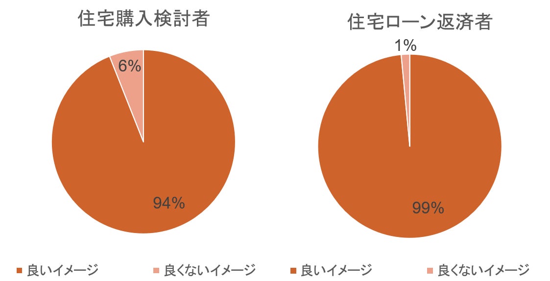 イメージについては、住宅購入検討者及び住宅ローン返済者ともに9割以上から好印象の結果が出ています。モゲチェックでは、住宅ローンを必要とする方が最も有利な経済条件の住宅ローンを選べるよう、認知活動およびサービスのブラッシュアップを今後も重ねて参ります。