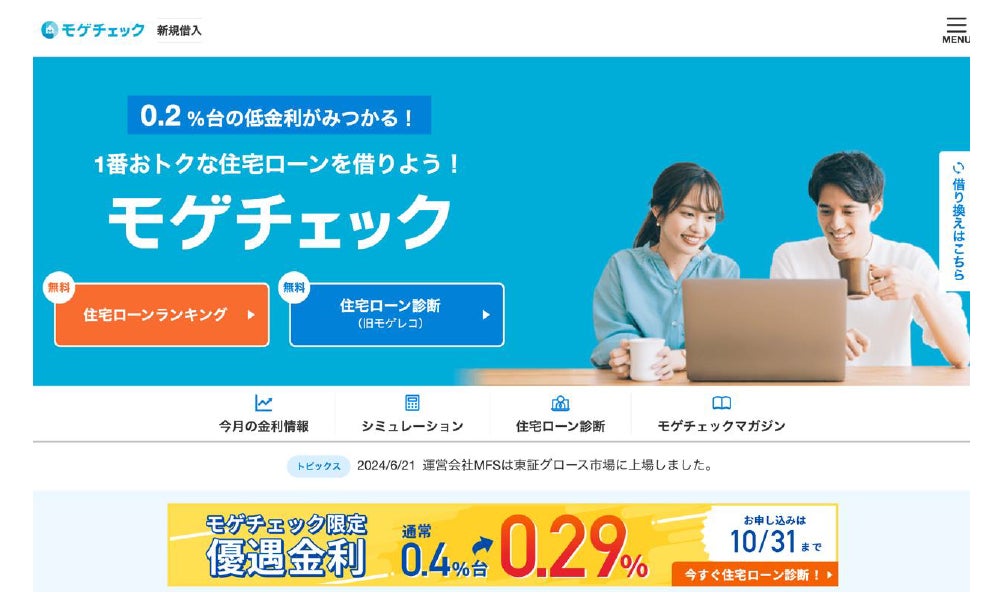 事業:住宅ローン比較診断サービス「モゲチェック(https://mogecheck.jp/)」の運営