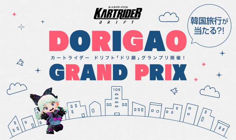 また、「リアル・カートライダー ドリフト」体験イベントの開催に合わせて、同イベント体験中の顔写真や動画などをSNSにご投稿いただくと、韓国ペア旅行などの豪華賞品が当たるキャンペーン「ドリ顔グランプリ」も開催いたします。