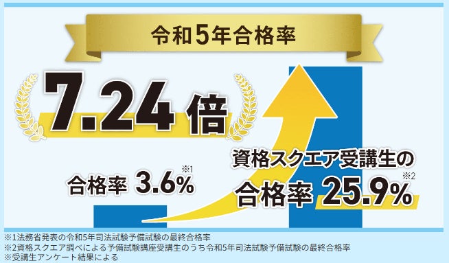 「資格スクエア」は、”合格するための正しい学習”をシステム化した法律系 難関資格のオンライン予備校です。多くの難関試験合格者から学習法をヒア リングし、「合格するためにはどのように学習すべきか」の最適解を見出 し、脳科学の要素を加えカリキュラム化。また、講義や教材の提供にとどま らず、最適なデジタル学習環境とサポートによって”正しい学習”の実践を支 えることで、多くの人が合格を掴み、活躍できるように支援します。