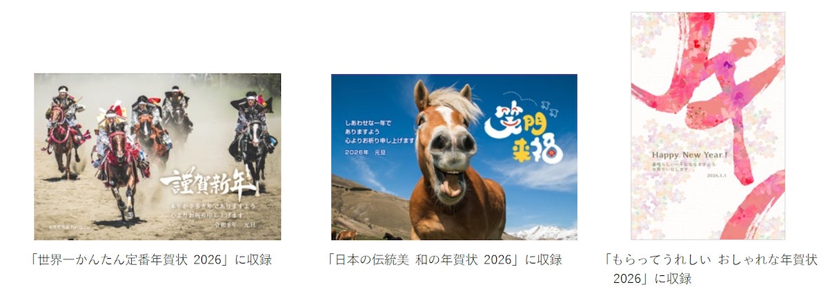 株式会社角川アスキー総合研究所(本社:東京都文京区、代表取締役社長:垣貫真和)は、「KADOKAWAの年賀状素材集」の2026年版として、「世界一かんたん定番年賀状 2026」「もらってうれしい おしゃれな年賀状 2026」「日本の伝統美 和の年賀状 2026」の3タイトルを発売したことをお知らせします。