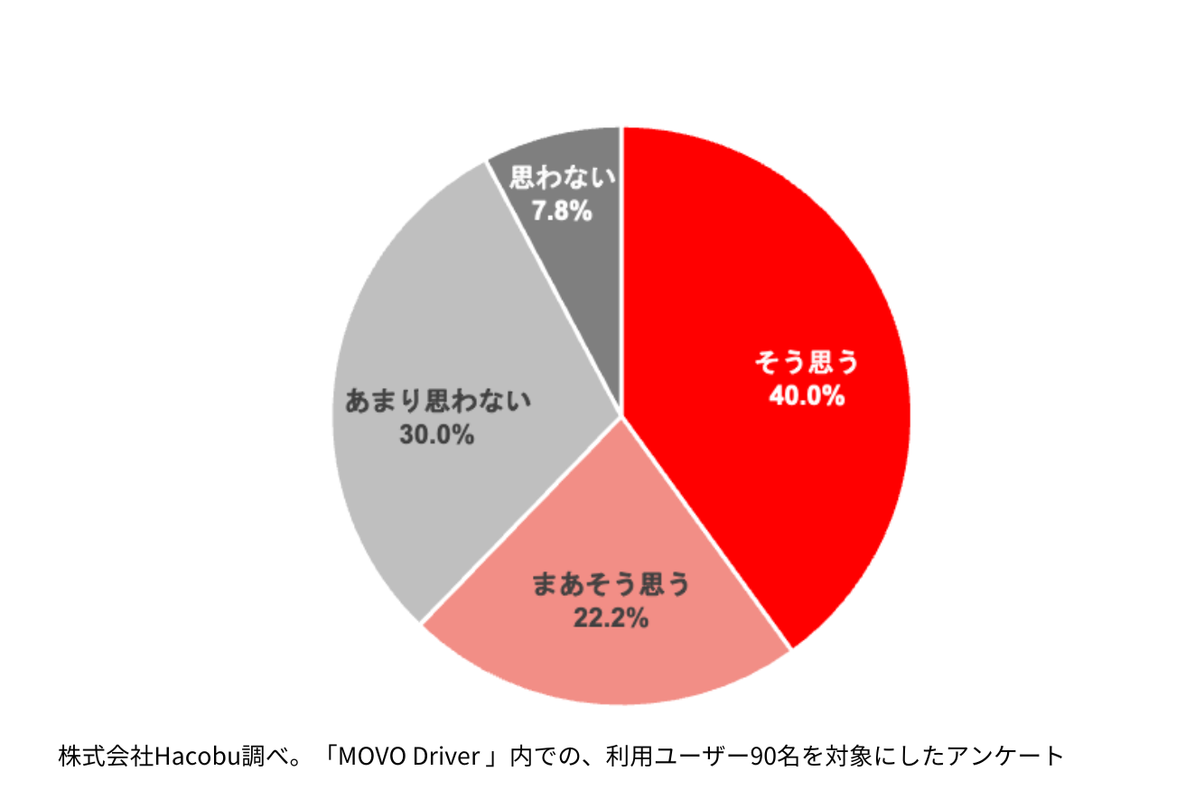 ※1 株式会社Hacobu調べ。「MOVO Driver 」内での、利用ユーザー90名を対象にしたアンケート調査(調査期間:2023年11月27日〜2023年12月27日)。