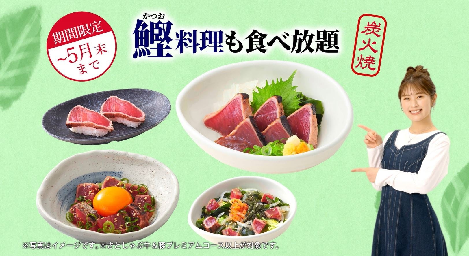 5月末までの期間限定で、今が旬の「炭火焼 鰹のたたき」などの鰹料理も食べ放題です。