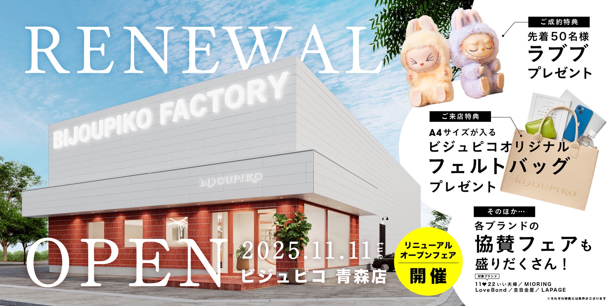 日本最大級のブライダルジュエリー自社工場を併設して生まれ変わったビジュピコ青森店が、2025年11月11日(火)青森県弘前市に移転リニューアルオープン!