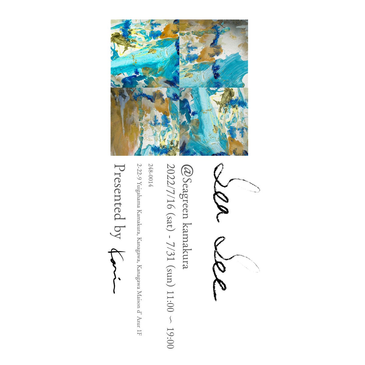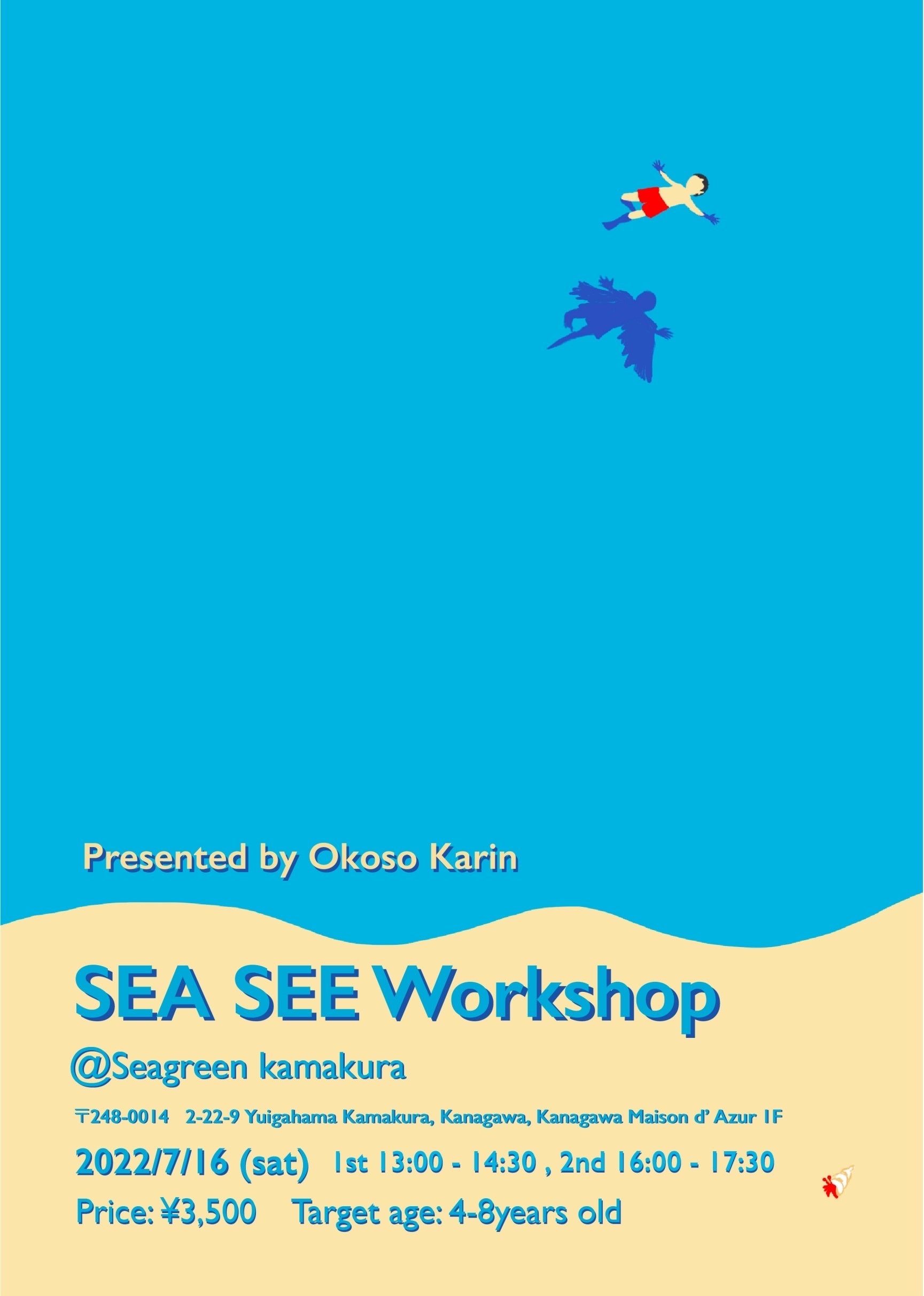 Seagreen KAMAKURAにて、7/16(土)-7/31(日)の期間限定でモデルとして広告や紙面等で活躍する傍ら、アーティストとしても活動する大社カリンさんによる個展と 、アート、保育を掛け合わせたワークショップを開催します。