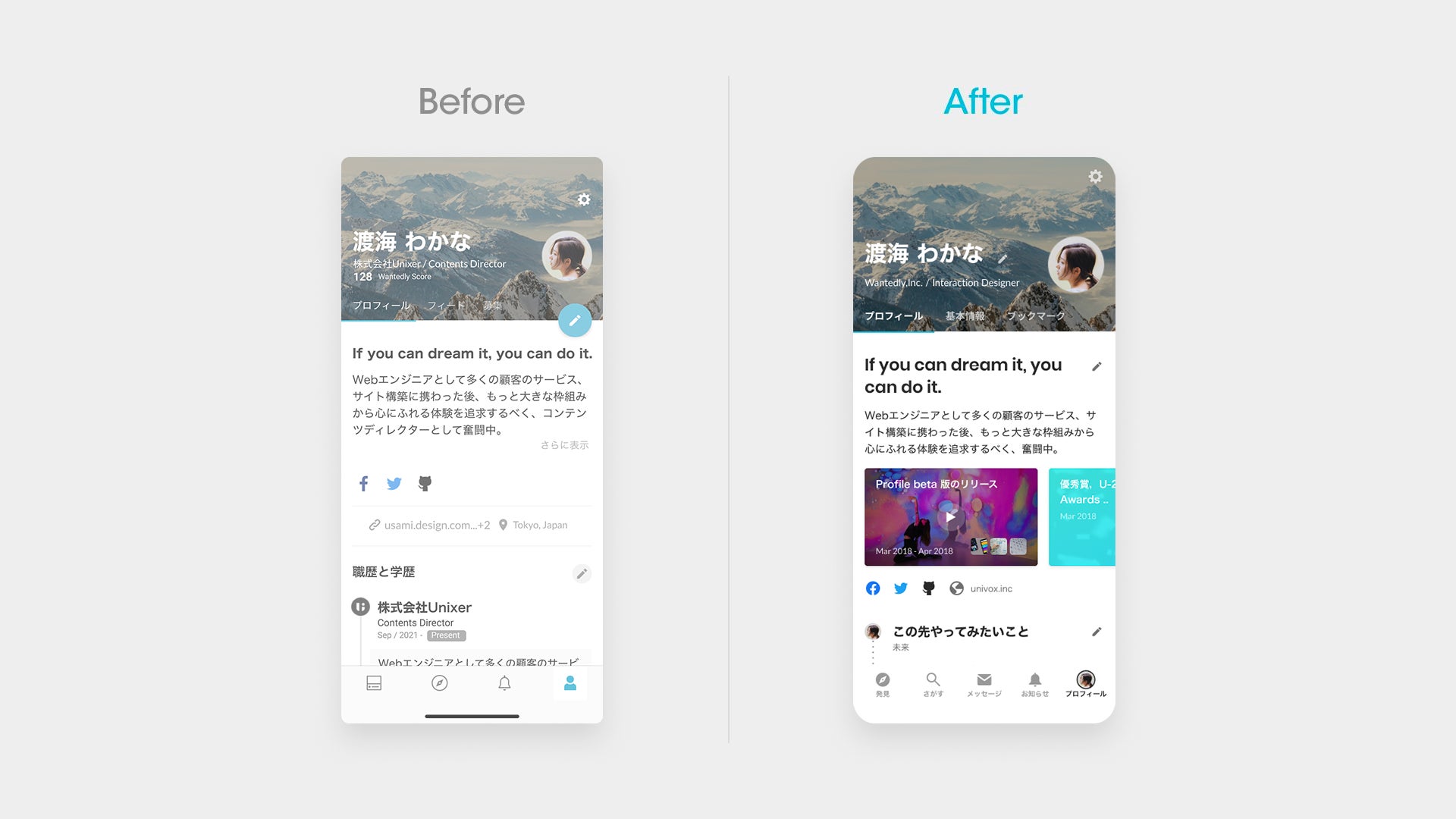 リリース以来最大規模で刷新した Wantedly Visit アプリのプロフィール