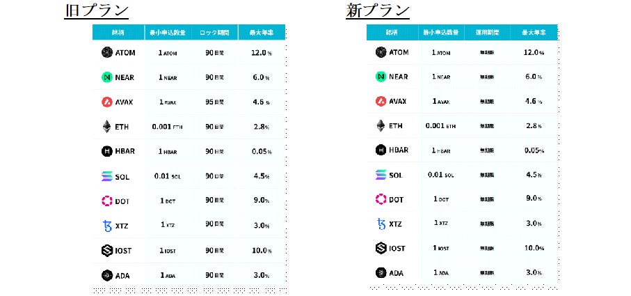これまでのステーキングサービスは、有期かつ単利運用だったため、90日毎に更新などの対応の必要性や、ブロックチェーン特有のロック解除タイミングなどによるタイムラグが発生しておりました。また、単利での運用のため、長期での運用のメリットが限られていました。