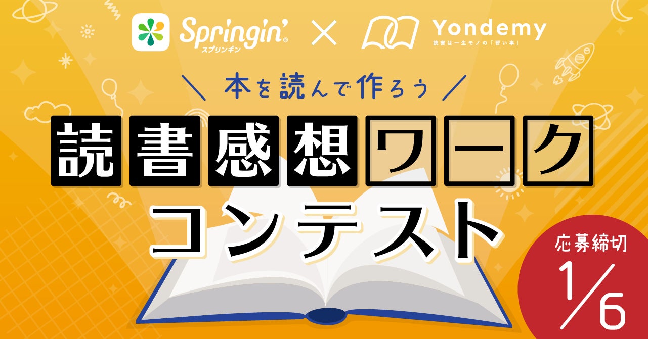 株式会社しくみデザイン(本社:福岡県福岡市博多区、代表取締役:中村俊介、以下「しくみデザイン」)は、オンライン読書教育の習い事「ヨンデミー」を運営する株式会社Yondemy(本社:東京都中央区、代表取締役社長:笹沼 颯太、以下:ヨンデミー)と協業で、スマホでゲームがつくれるアプリ「Springin’(スプリンギン)」において、読書推進運動協議会の開催する読書週間(2024年度は10月27日〜11月9日)にあわせ、2024年10月27日(日)より、「読書感想ワークコンテスト」を開催いたします。
