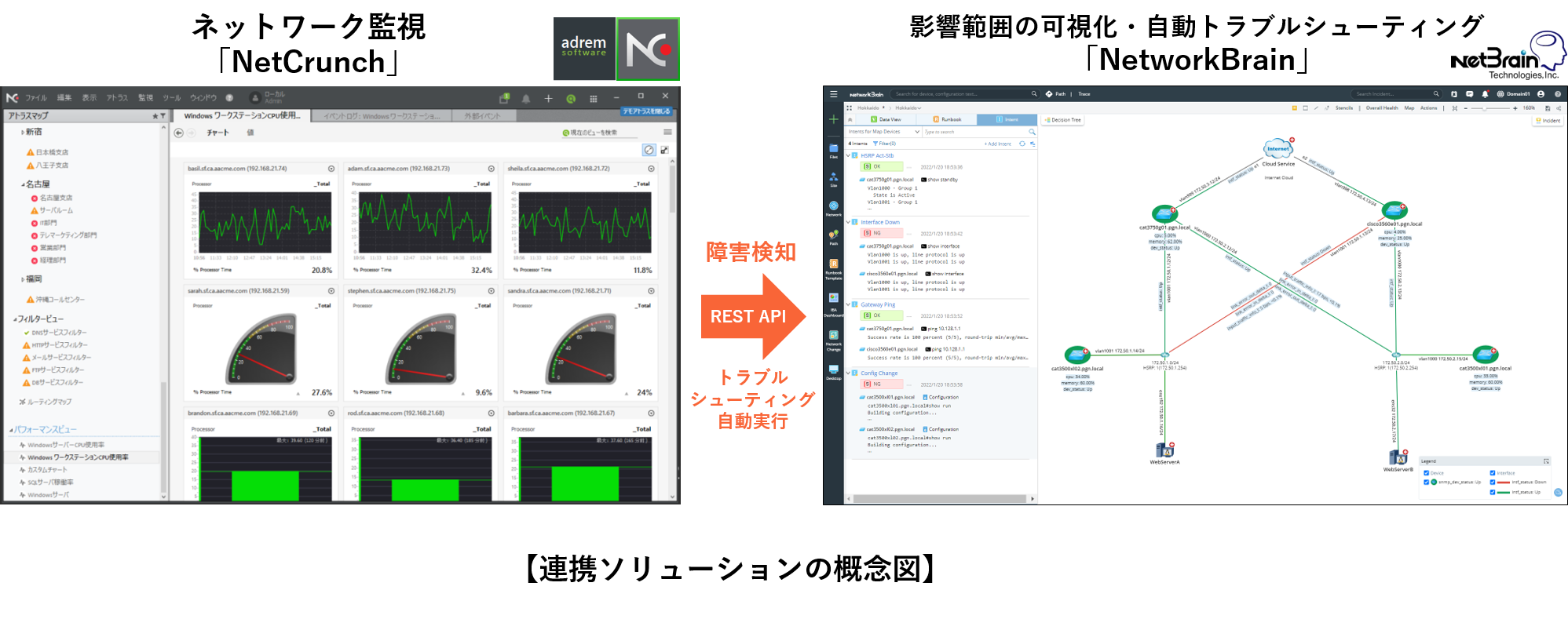 ネットワーク可視化/自動化「NetworkBrain」とネットワーク監視「NetCrunch」の連携よるネットワークトラブルシューティング自動化ソリューションを提供開始
