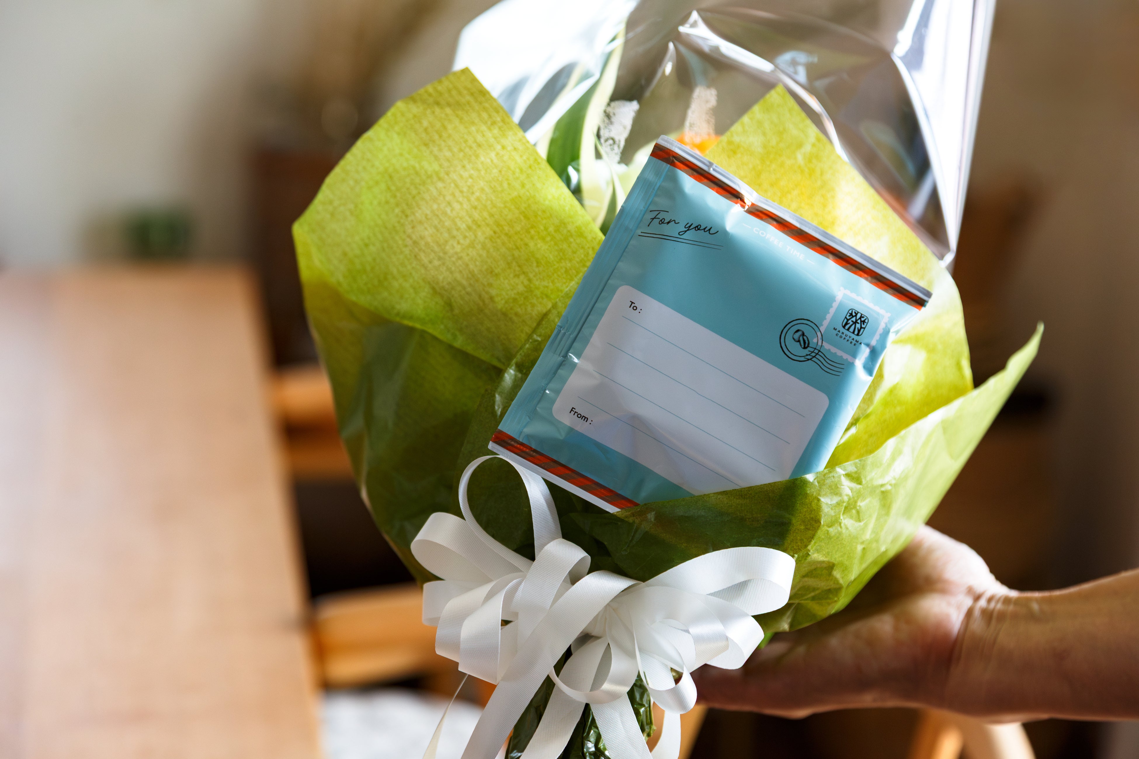 ドリップバッグのパッケージに手書きメッセージが書き込める仕様になっているので、お世話になっている方や大切な家族、ご友人に向けてメッセージを添えて、ちょっとしたお礼の気持ちや応援の気持ちを一杯のコーヒーと共に伝えることができます。感謝や応援の気持ちと一緒に“ほっとひと息つけるひととき“もお届けすることができます。
