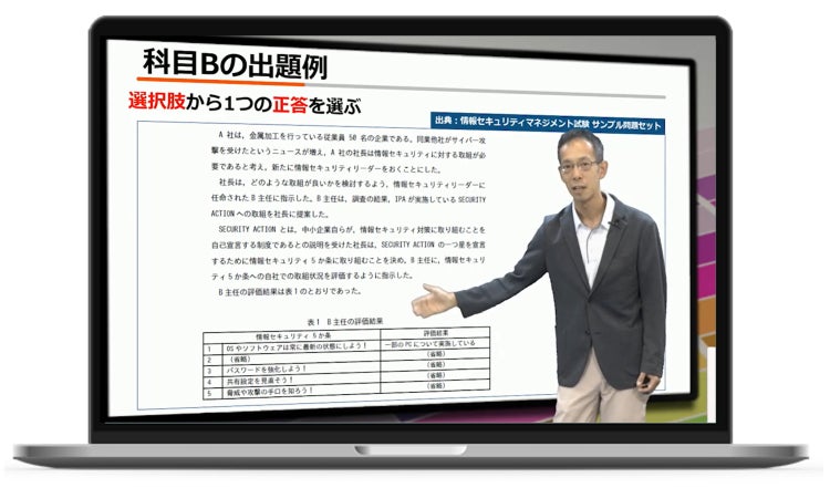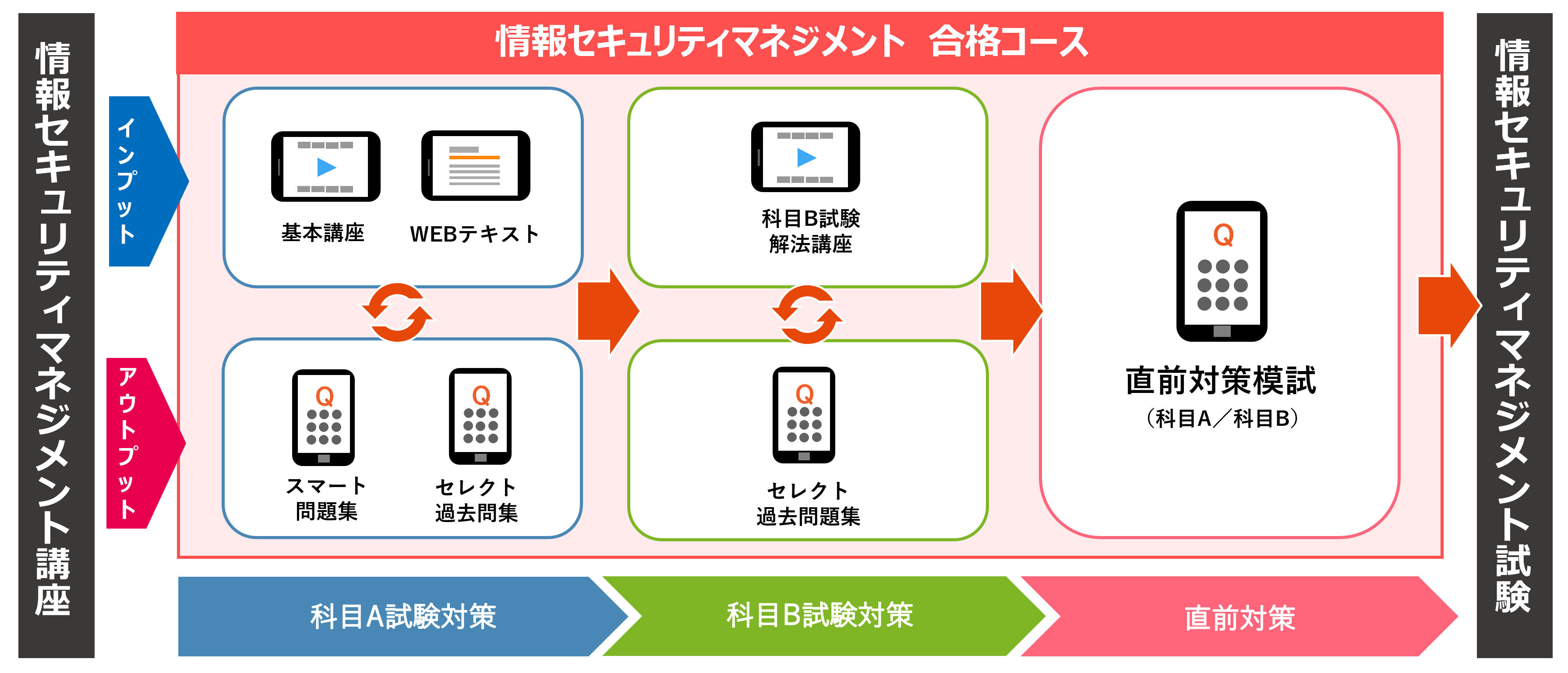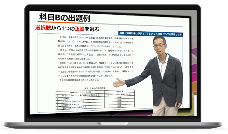 科目A試験から科目B試験まで、合格に必要な教材が全て揃っており、スタディングだけで情報セキュリティマネジメント試験合格を目指すことが可能です。