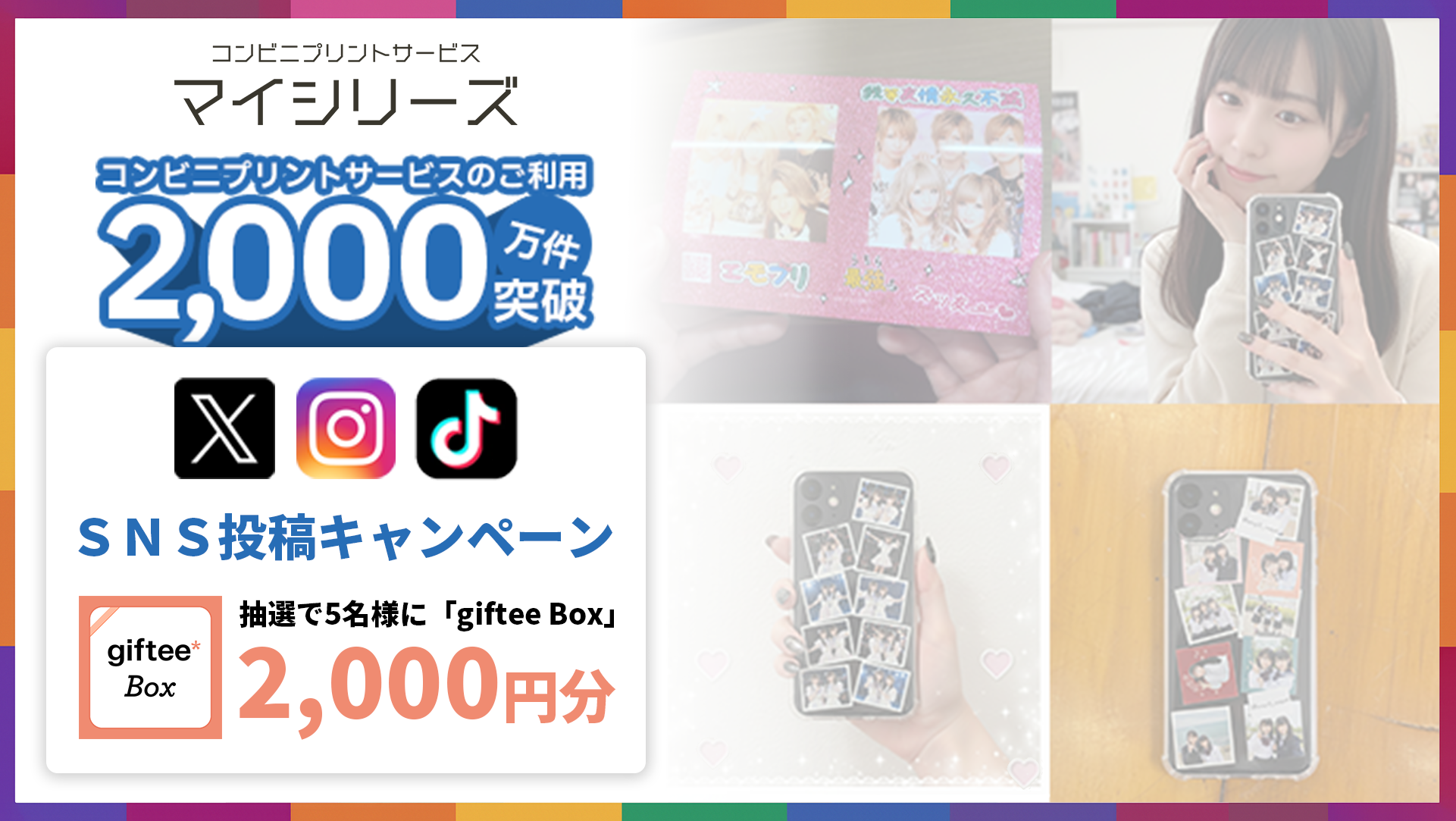 キャンペーン第1弾として、『マイ証明写真』もしくは『エモプリ』を利用している様子をテーマに沿ってSNSへ投稿いただいた方の中から、抽選で5名様に「giftee Box ®」2,000円分をプレゼントいたします。