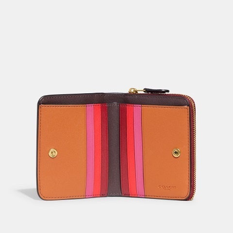 3辺に大きく開くラウンドジップタイプのポケットが便利なミニ財布のビルフォールド ウォレット。耐久性が高く、傷や汚れが目立ちにくい上質なぺブル レザーで登場しました。クロムなめしと顔料染めで仕上げた鮮やかなカラーが特徴です。内側のマルチカラーのデザインがキュートなカラーブロックのタイプと、シンプルなソリッドカラーの2タイプをご用意しました。
