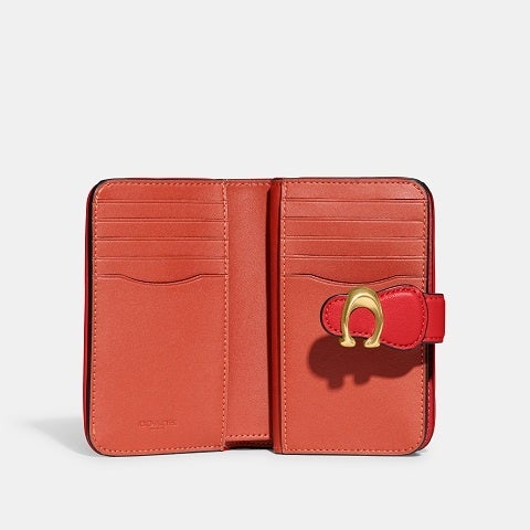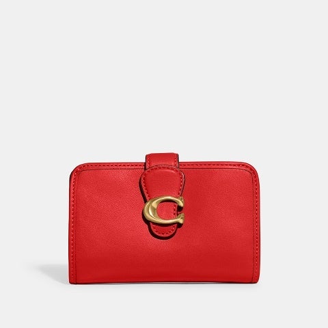 ころんとしたフェミニンなフォルムが美しい二つ折り財布のタビー ミディアム ウォレット。滑らかで自然な艶があるスムース レザー仕上げで、使う度に深みが増します。"C" で飾ったスナップボタンを開けると、多数のカードポケットやスリップポケットなど収納が充実しています。開運カラーとされるターコイズグリーンや、情熱やパワフルさを象徴するレッドなど鮮やかなカラーパレットに加え、定番のブラックやグレーも人気。 コーチのアイコンの "Tabby (タビー)" コレクションのバッグとお揃いのコーディネートも楽しめます。