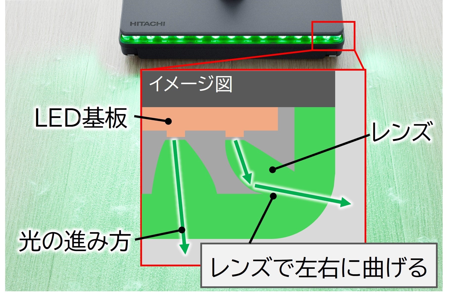 1. ヘッドの前と左右3方向の広い範囲で見えにくいごみを浮かび上がらせる「3方向ごみくっきりライト」 New