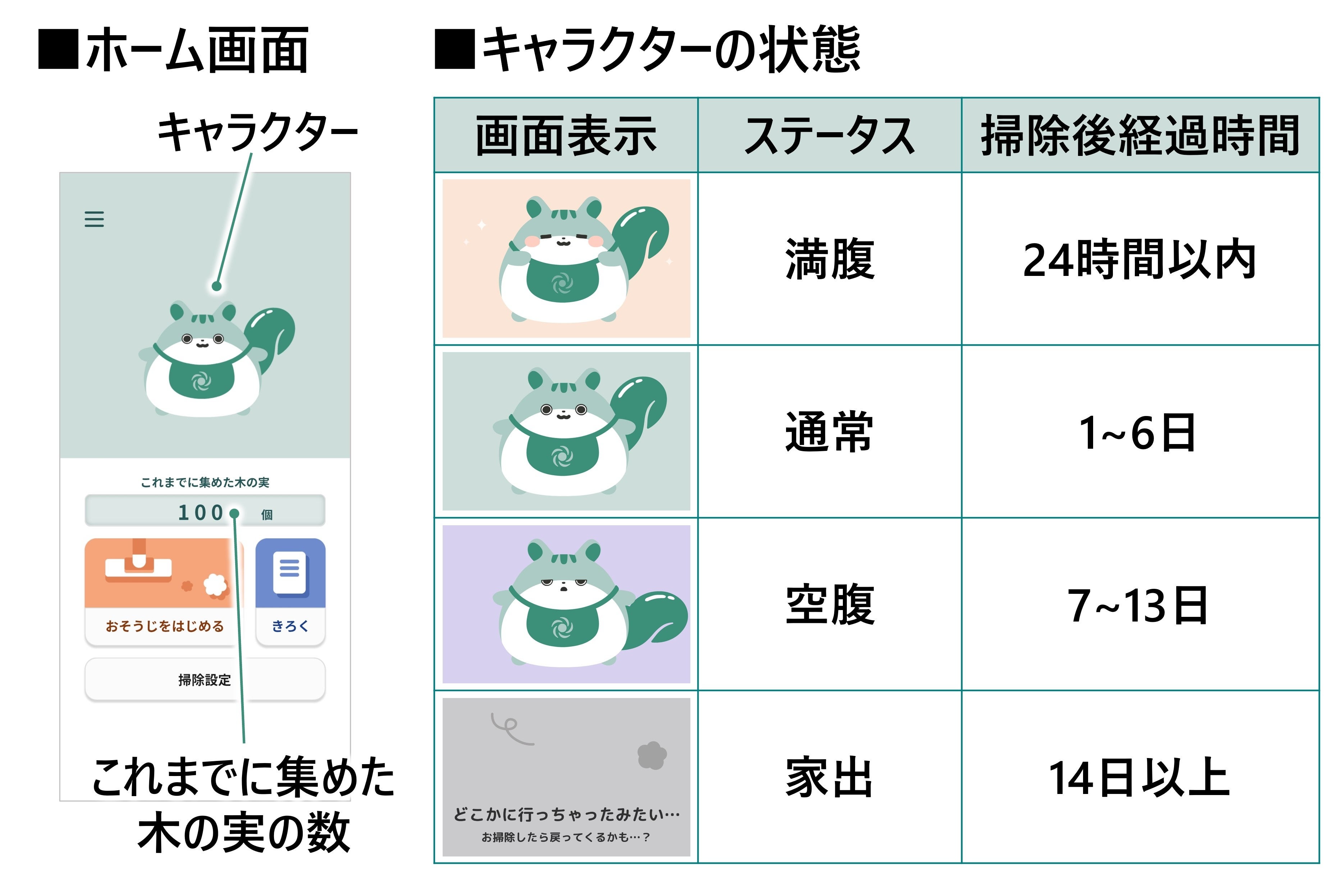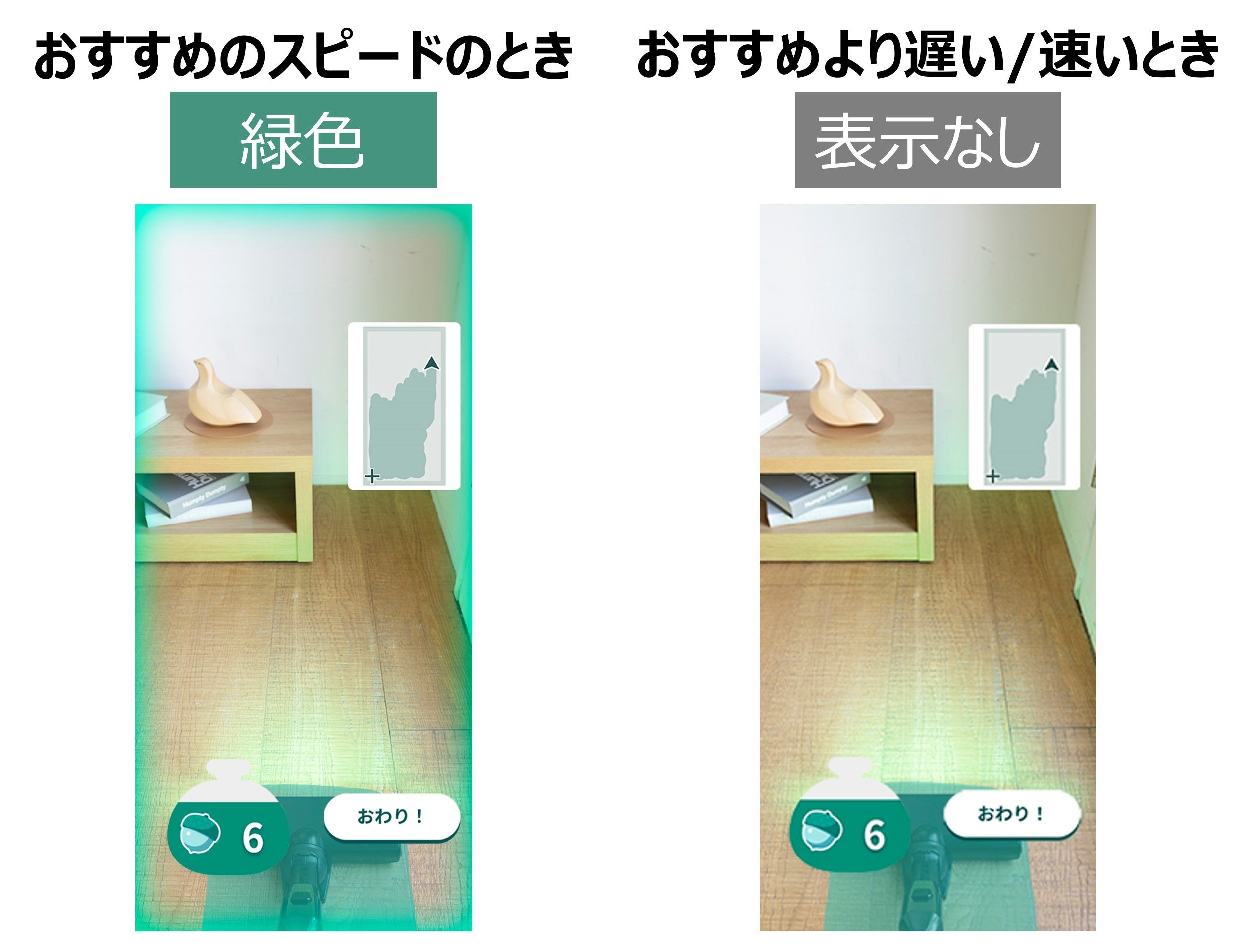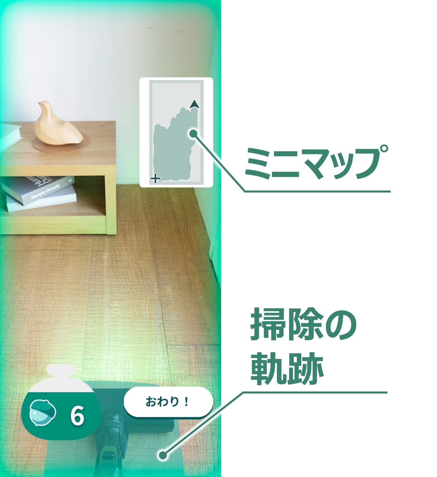 今回、拡張現実(AR)の技術を活用し、掃除機に装着したスマートフォンの画面で床面の掃除した箇所や軌跡を可視化するとともに、楽しく掃除ができる演出を加えた「ARおそうじ」アプリを開発し、本製品に対応します。掃除で楽しさや達成感を得られることに加え、掃除の軌跡を可視化することでどこを掃除したかわかり、上手に掃除ができるようにサポートします。本アプリは、9月中旬からダウンロード配信を開始します。