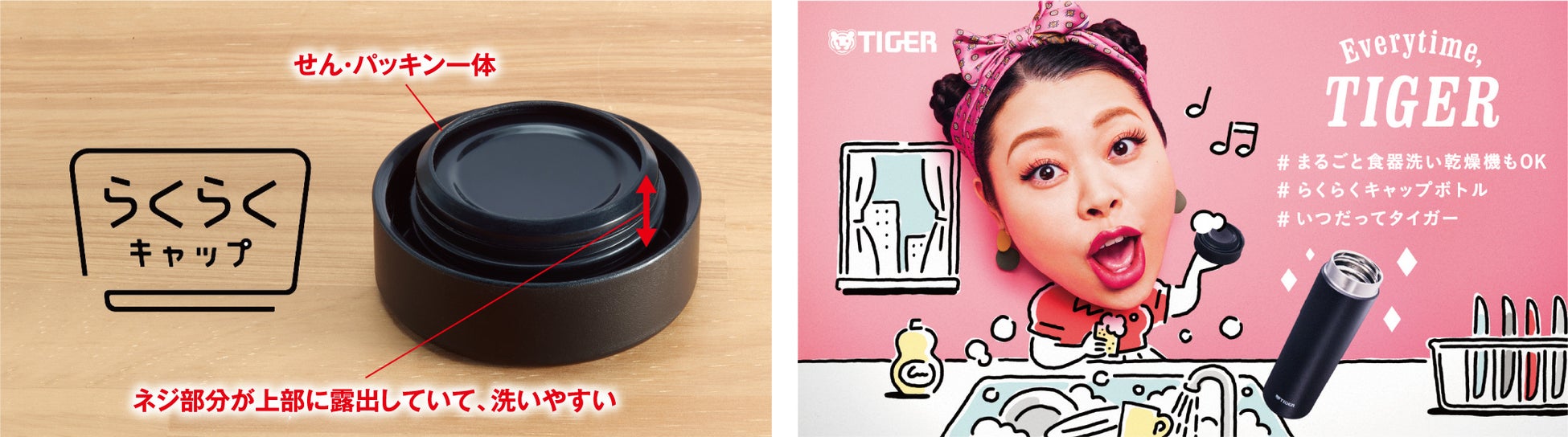 タイガー魔法瓶“初”のパッキン一体型せん。ボトルまるごと食器洗い乾燥機にも対応