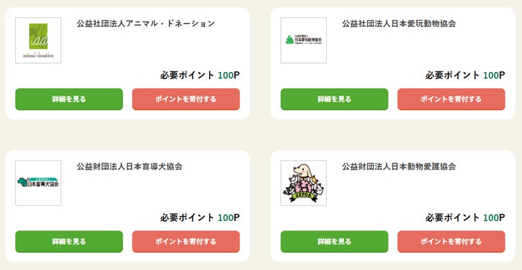モニター様がアンケートに回答いただくと、サイト内で1ポイント=1円として利用できるポイントが付与される仕組みです。ポイントは動物愛護団体への寄付やアニコムオリジナルグッズ、協力企業様の商品との交換に利用できます。