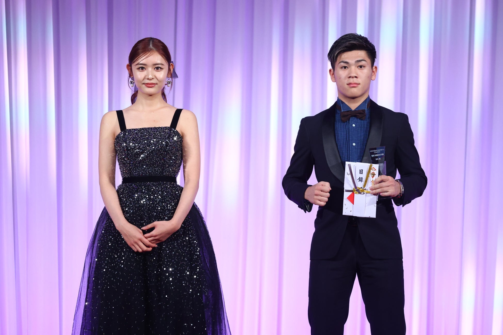 大久保選手に受賞した感想を伺うと、「プロデビューして一年経っていないなかで、『THE MACTH』の出場、ABEMA『オオカミ』の出演など、心に残る1年でした。新人賞を受賞できたことを嬉しく思います。」と話し、「K-1世界チャンピオンを目標に、今年は芸能活動も続けながら、階級を上げてバンタム級の挑戦や、タイトルマッチへの参戦を頑張りたいです。」と抱負を語りました。