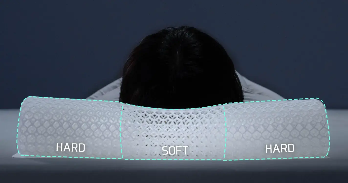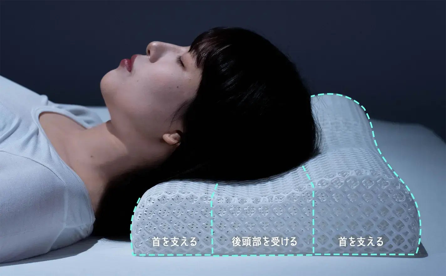 3Dプリント技術による構造設計を採用。内部構造から見直した枕