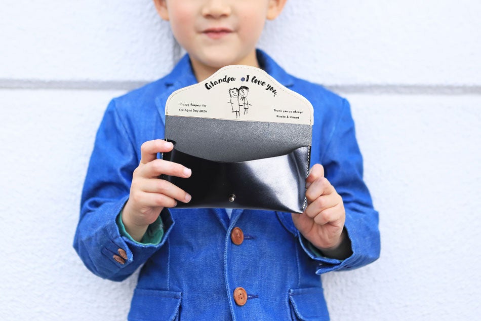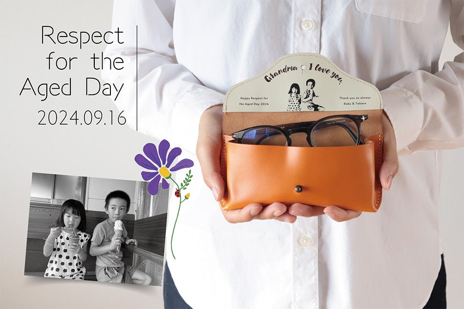 おじいちゃん、おばあちゃんに贈りたい。帰省の思い出でつくる「本革メガネケース」。敬老の日 1000円offキャンペーンが8月1日よりスタート。子どもの写真や絵でつくる世界でひとつの贈り物。