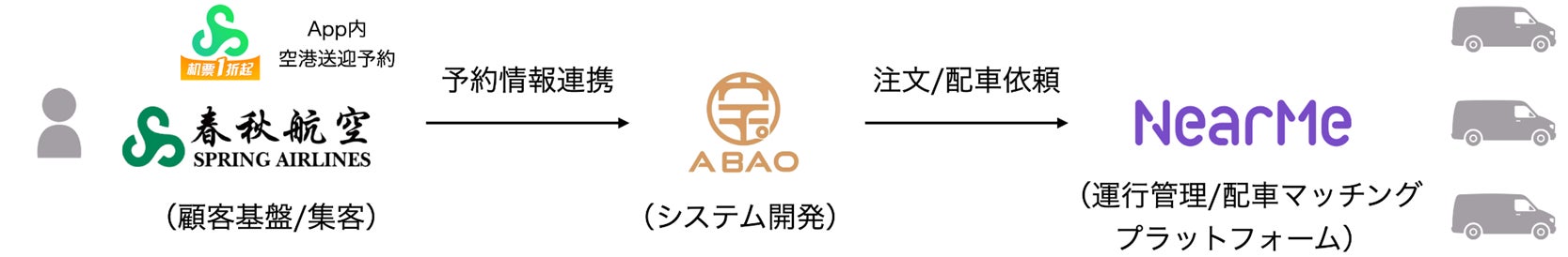 今回の連携では、中国最大手LCCである春秋航空と、システム開発会社の阿宝株式会社、そして、空港送迎型のエアポートシャトルや、まちでのタクシーや貸切ハイヤーを提供するニアミーの3社が連携し、訪日外国人旅行者の中でも、訪日中国人旅行者が安心して快適に移動できる仕組みの構築に取り組みます。