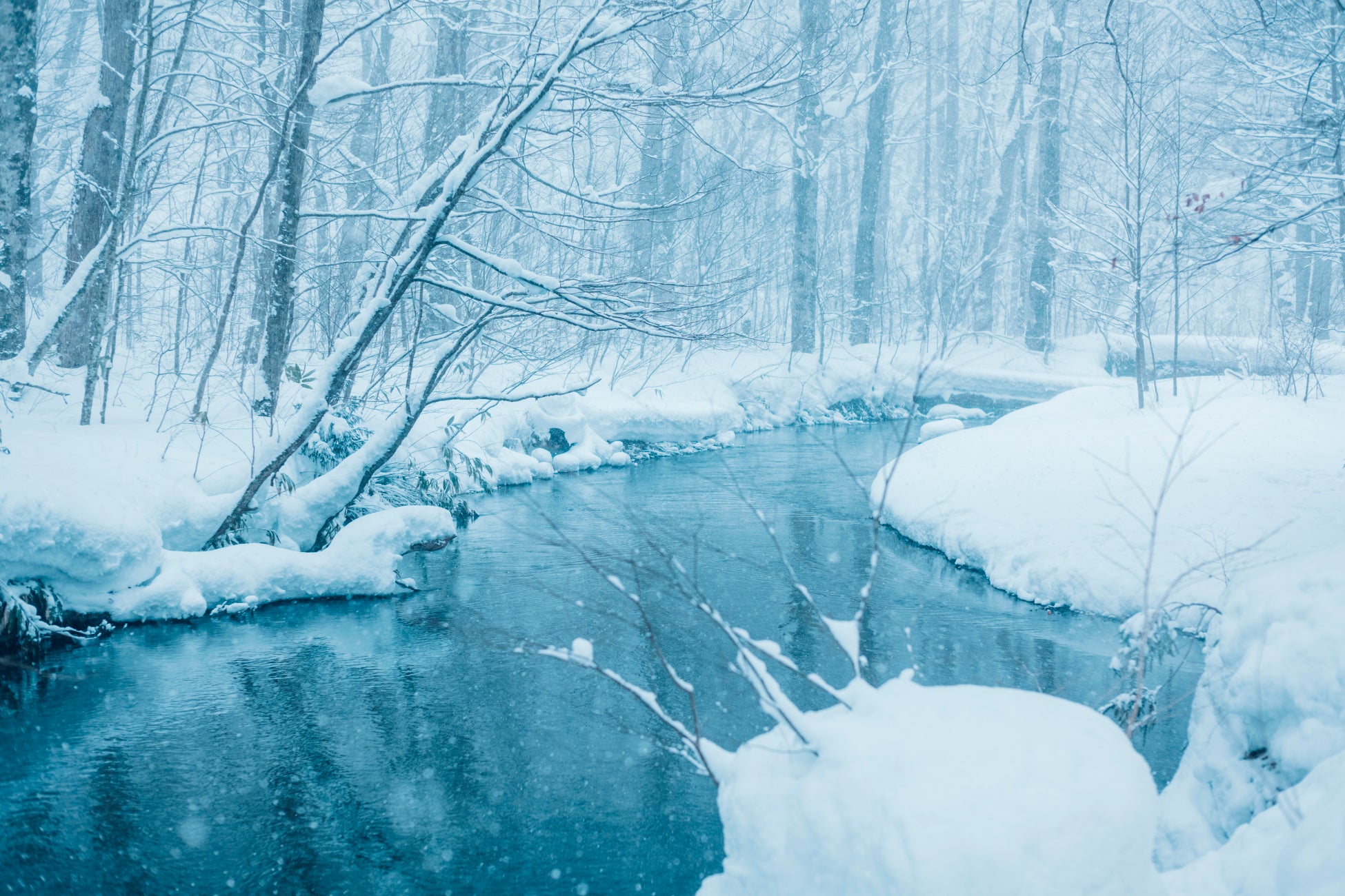 特徴3 渓流テラスから望む、幻想的な雪景色
