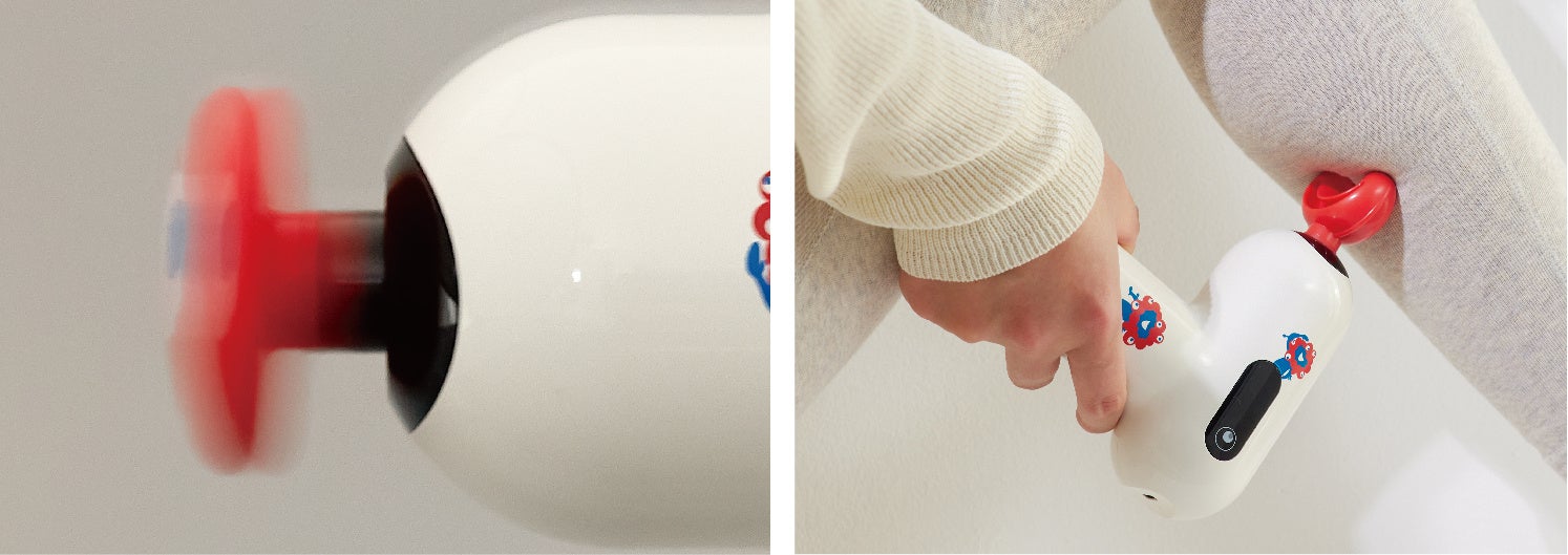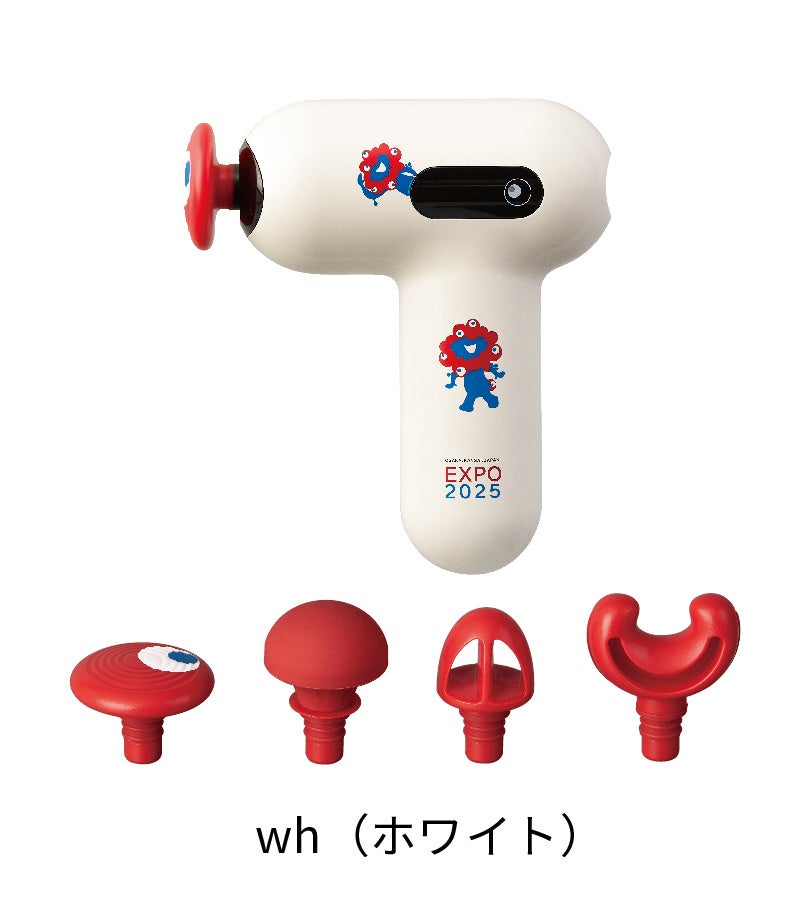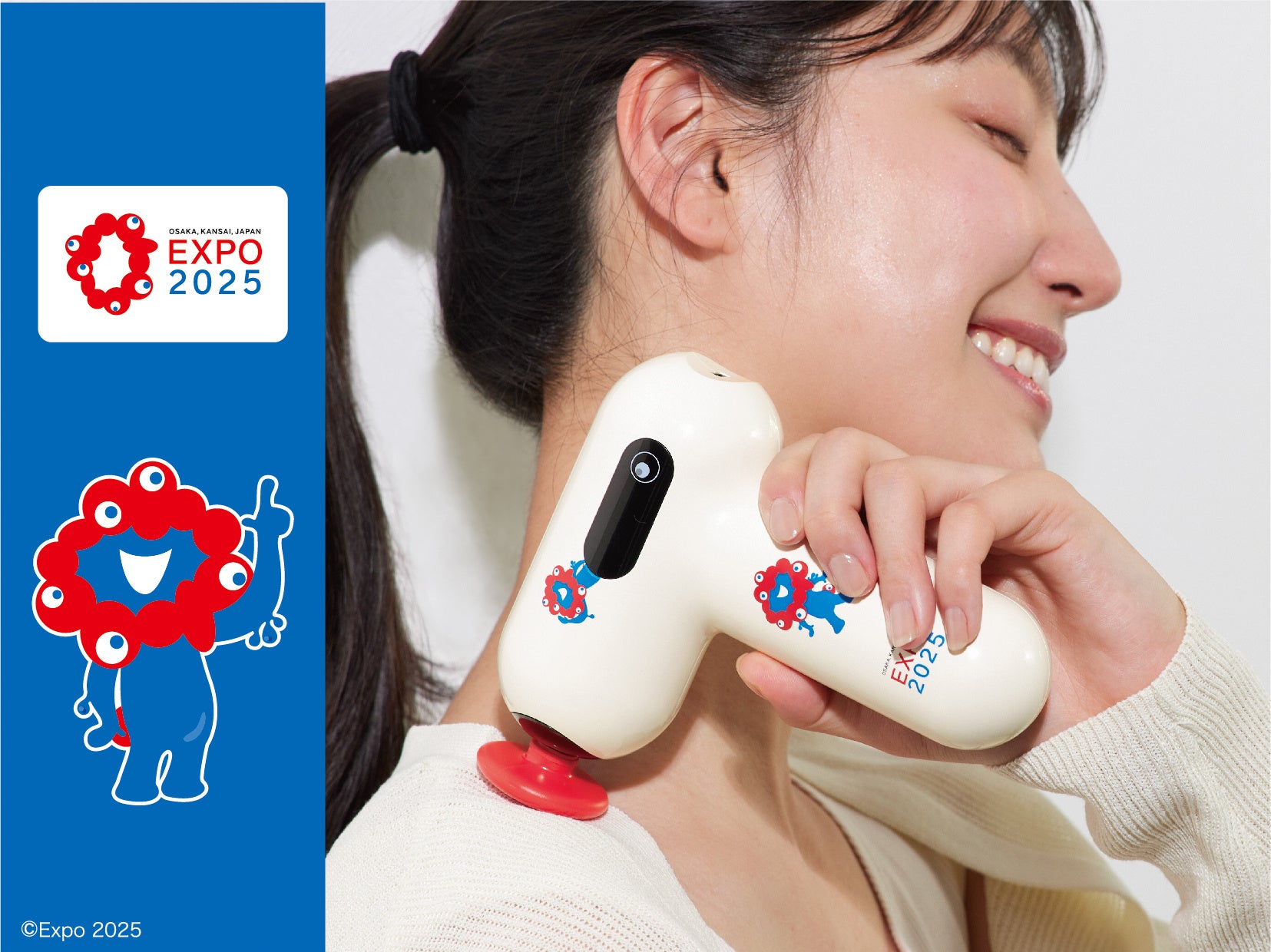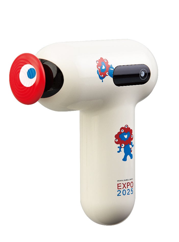 大阪が本社である当社は大阪・関西万博を盛り上げようという思いから、ミャクミャク仕様のボディケアガンを設計・開発しました。丸みを帯びた愛らしい形や電源ボタン、アタッチメントのカラーリングなど、全てをミャクミャク仕様にデザインしました。機能はもちろん、見た目からも癒やされる製品です。