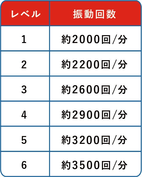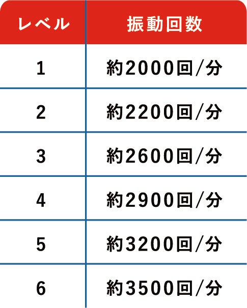 振動数 :6段階(約2000回/分、約2200回/分、約2600回/分、約2900回/分、約3200回/分、