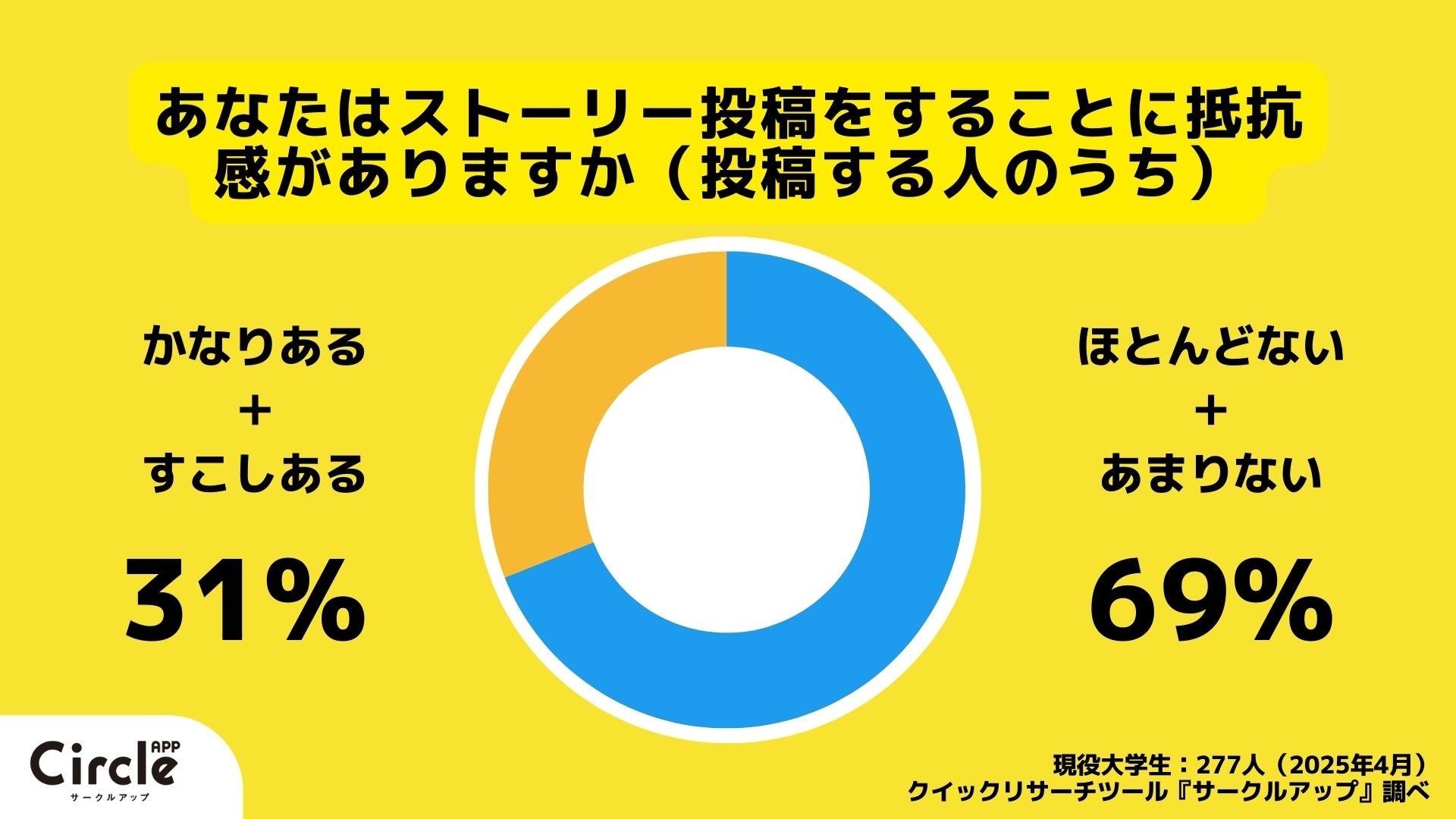 ただし、細かく見ると「フィード投稿に抵抗感がない」と答えた人も44%、「ストーリーに抵抗感がある」とした人も31%おり、必ずしも一枚岩ではないことがわかります。