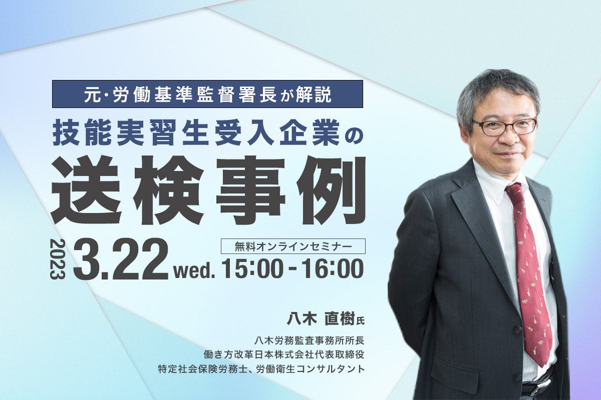 本セミナーでは、労働基準監督署長の経験を持つ八木 直樹氏をお招きし、全国の労働基準監督署が技能実習生の受入企業を送検した事例について解説します。