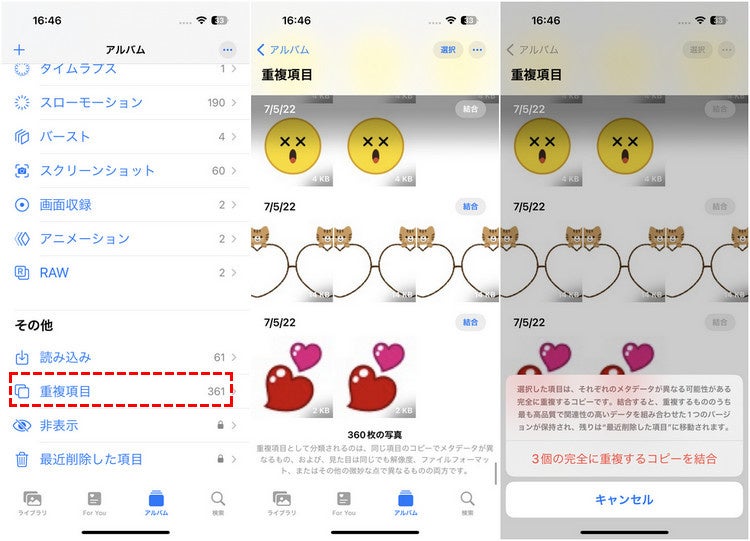 - 方法2:iPhone本体で重複した写真を検出して結合