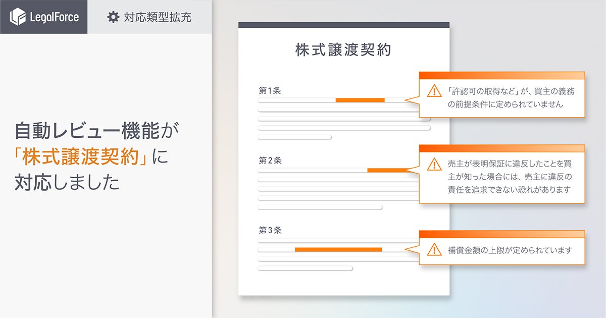 AI契約審査プラットフォーム「LegalForce」自動レビュー機能が「株式譲渡契約」に対応