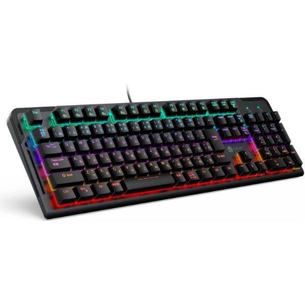 最もキーが軽い赤軸のゲーミングキーボードです。テンキーレスのためスペースを広くとることができ、PCゲームで重要なマウス操作を快適に行えます。また日本語配列を採用しているため、ゲームのほか通常のPC作業にも適しています。