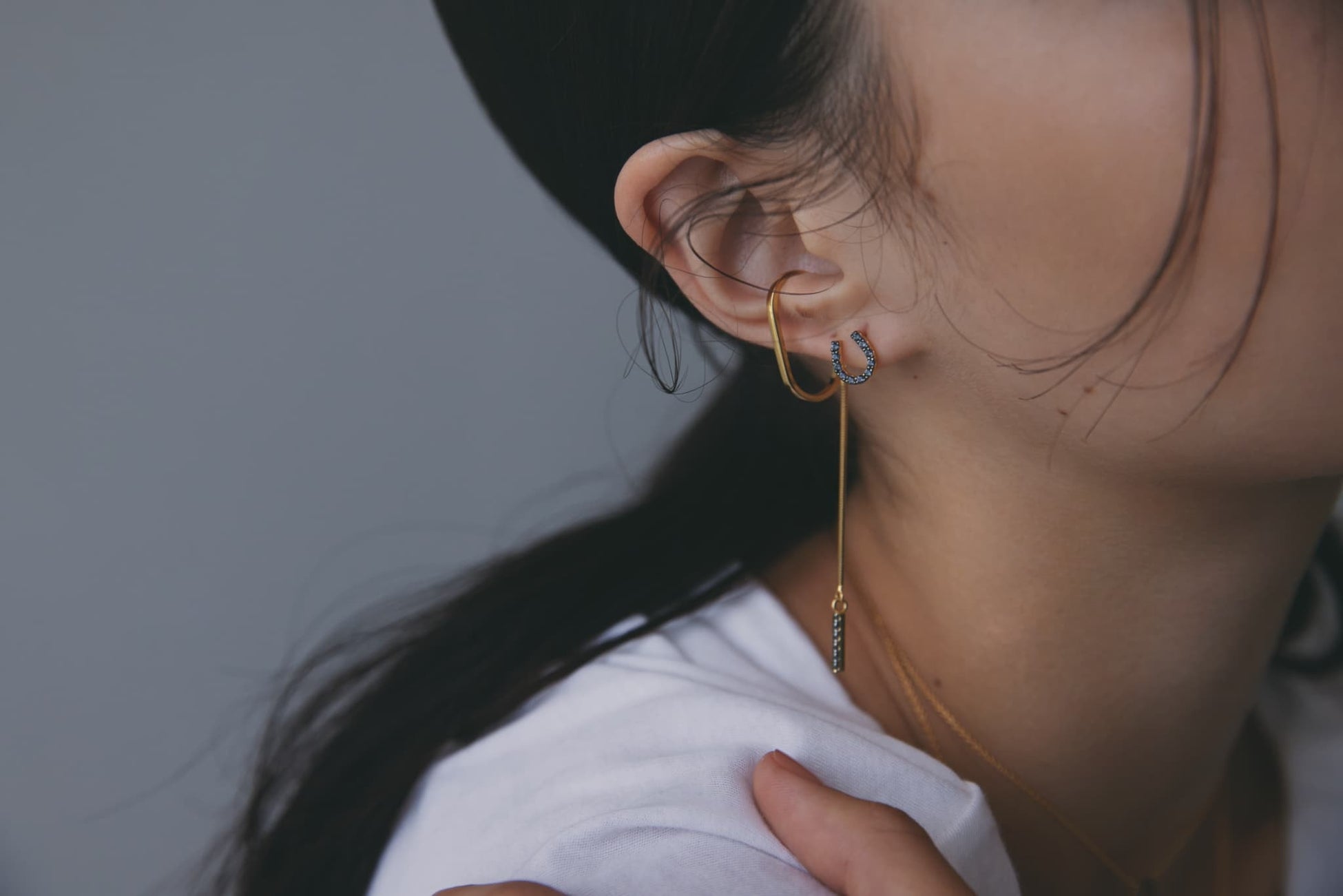 ピアスは着用するとやや外向きになるデザイン。馬蹄の開いた部分が、自分でも気付かないささやかな幸せを受け止めて欲しいという想いが込められています。