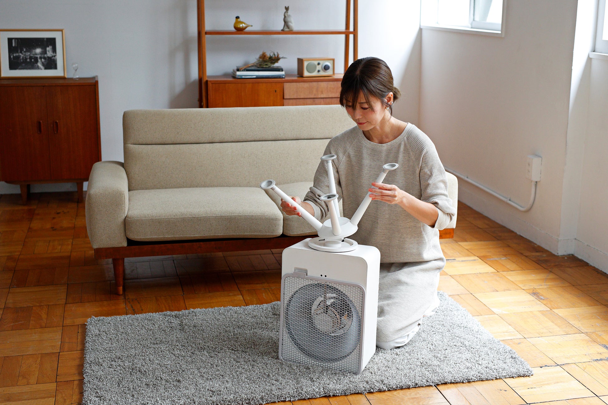 取り外し可能な四脚のスタンド付き。あたためたい場所や用途に応じて、スタンド・床置きの2パターンで使い分けが可能です。