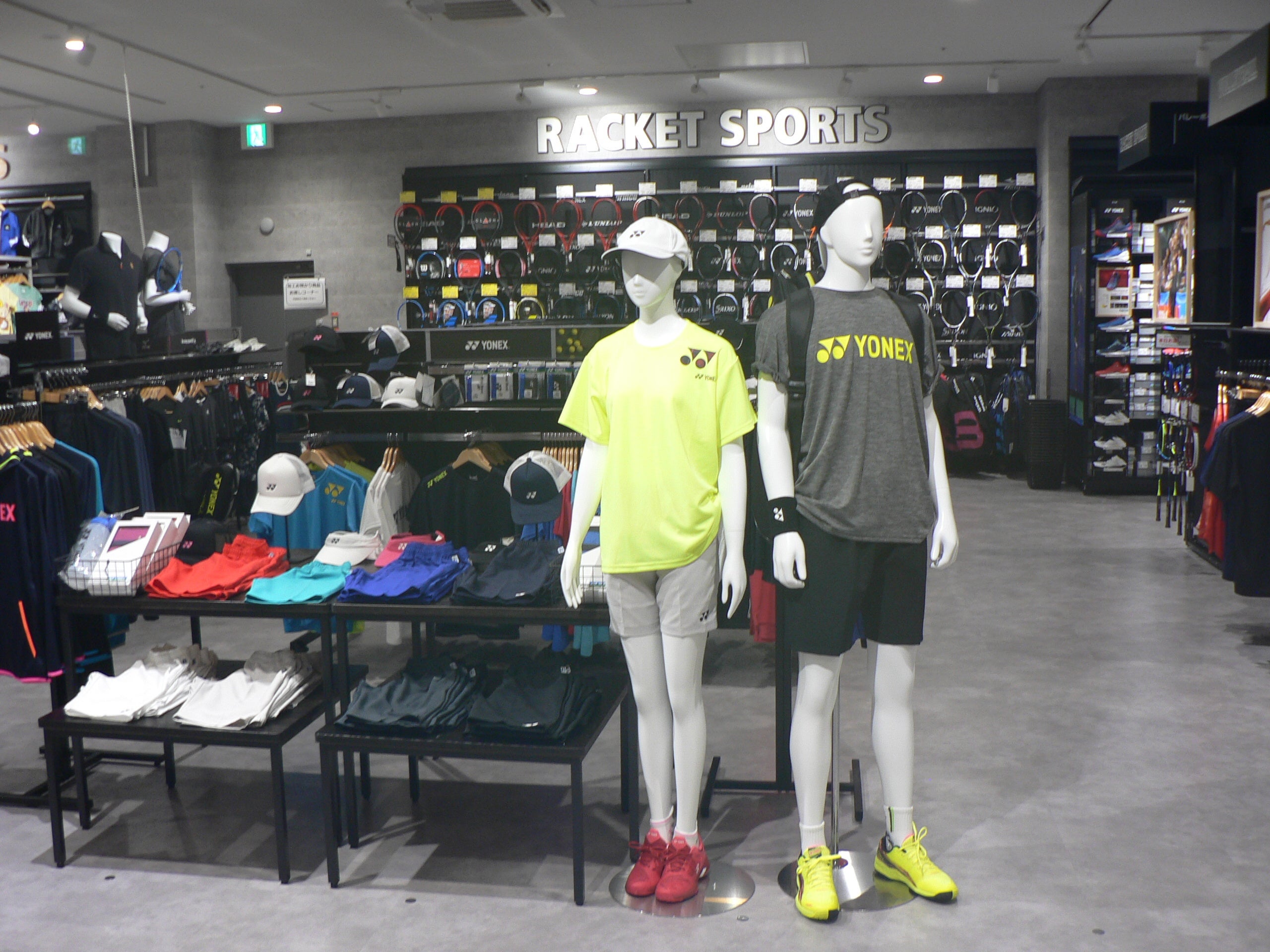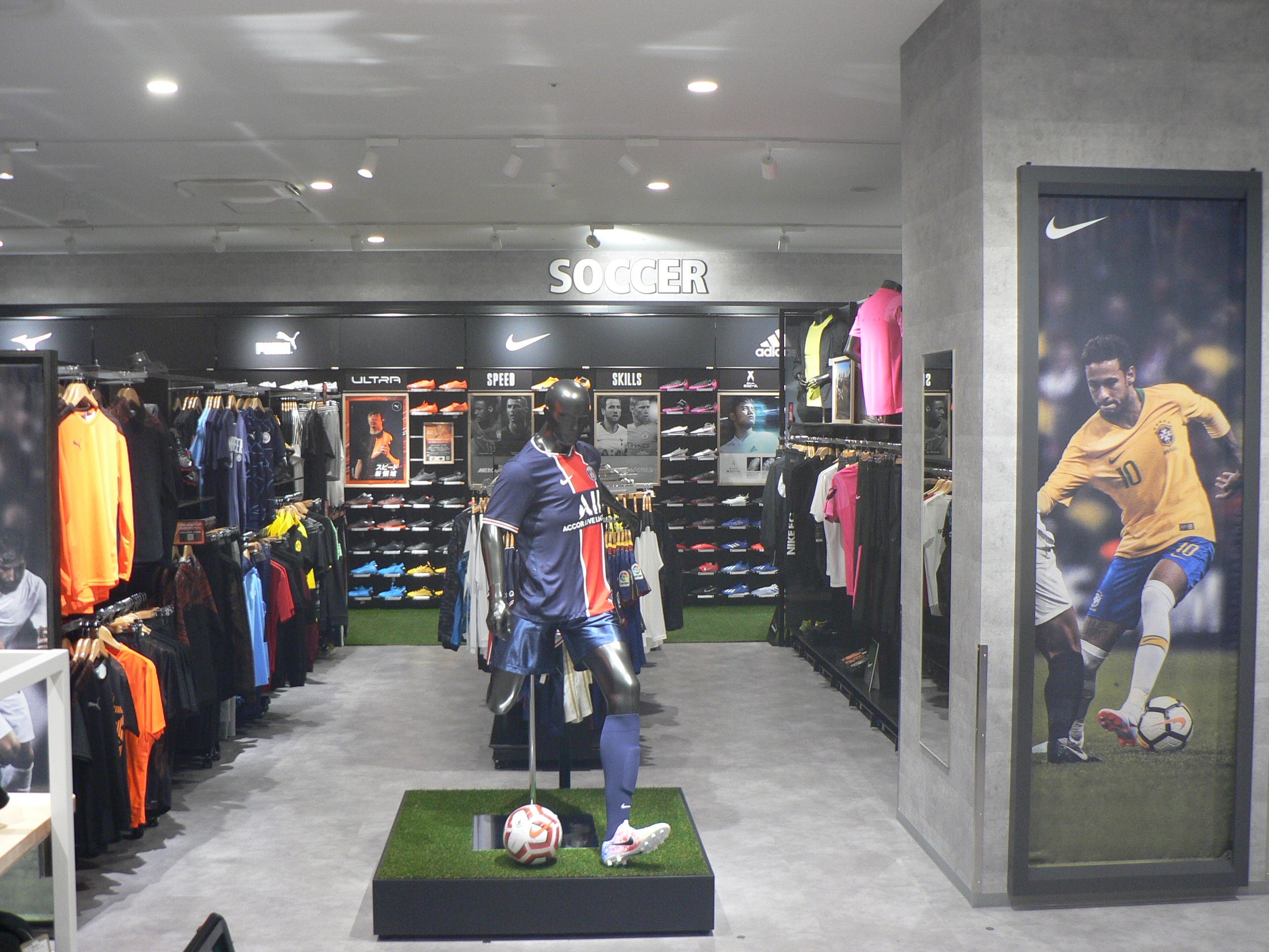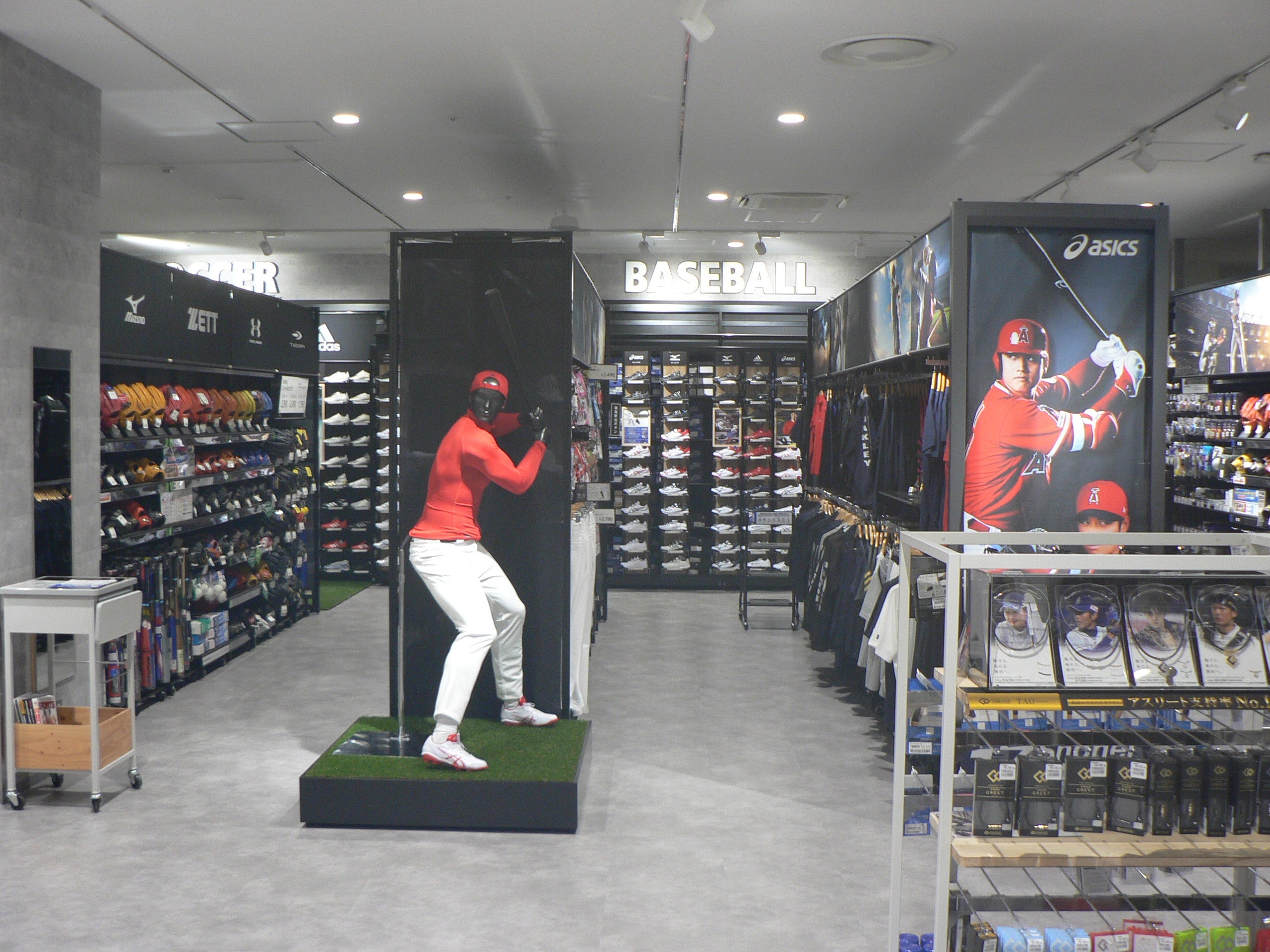 人気のフットウエアを入口から展開、サッカー・バスケットボール・ ラケットスポーツ(テニス・バドミントン・卓球)用品等の各売場は、専門店が店内にあるような ブース展開。初心者から上級者までご満足いただける品揃えと、信頼できるサービスを提供します。