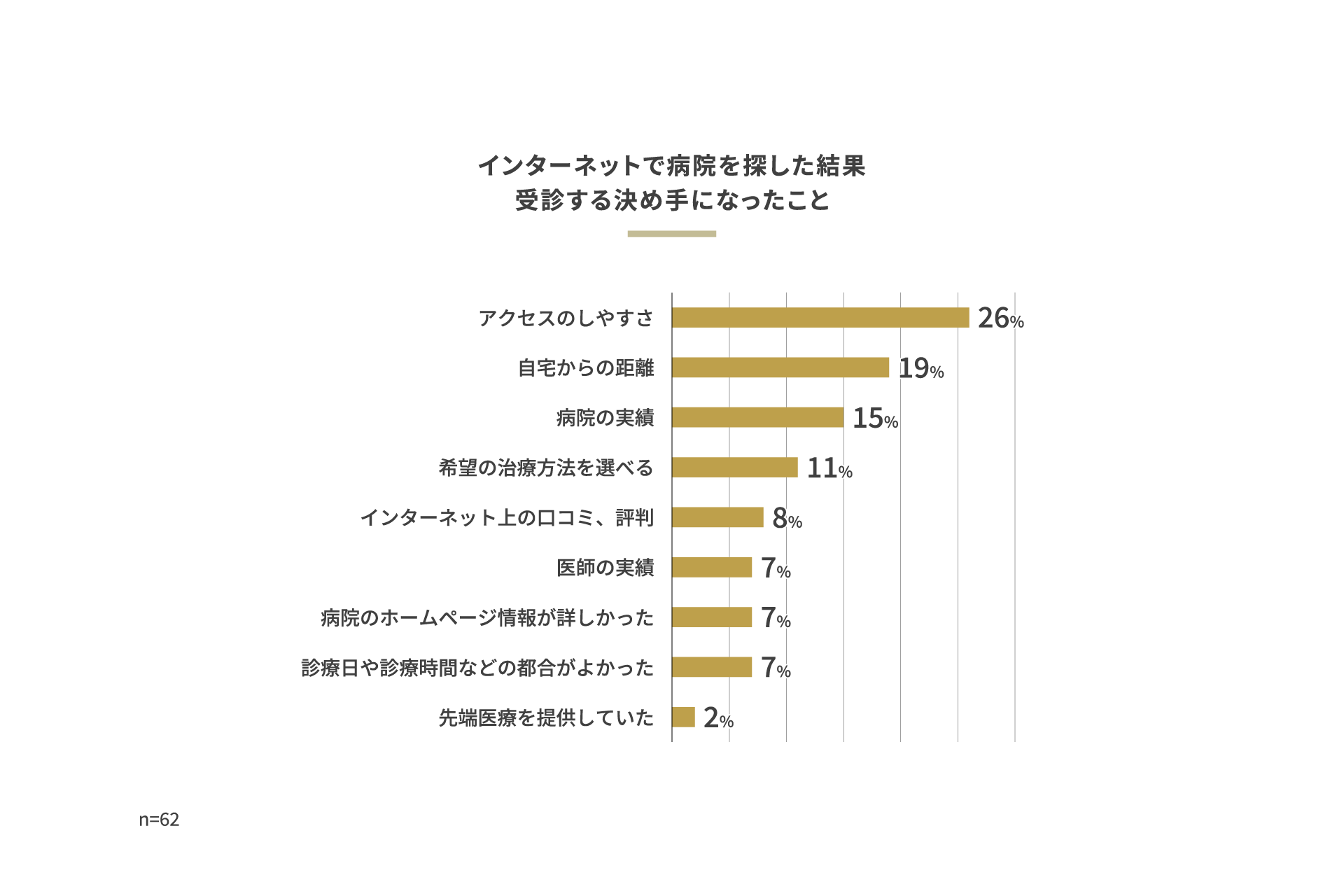 ・インターネット検索の結果、受診の決め手は「アクセス」と「自宅からの距離」