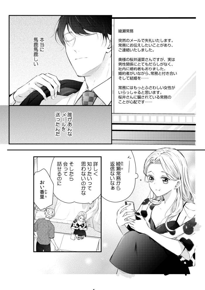 その頃仕事に行き詰まり、遥菜から乗り換えた西田にも不満をつのらせるかつての恋人・清貴は、遥菜を利用して理人の綾瀬不動産との契約をまとめようと画策していた。