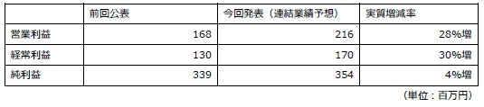 前回公表時は、連結子会社「MEDIHEAL JAPAN」設立前だったこともあり、前回公表の個別業績予想と今回発表の連結業績予想を比較することで、実質的な増減率を算出しています。