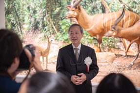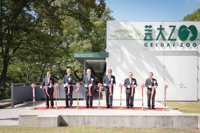 大阪芸術大学(学校法人塚本学院/所在地:大阪府南河内郡/学長:塚本 邦彦)は、10月1日(水)にアフリカや北アメリカの動物たちの剥製を展示した「大阪芸術大学 動物ジオラマ館『芸大Zoo』」のオープニング記念式典を開催し、本学キャンパス内31号館に開館いたしました。本館は、アフリカの野生動物の生息地を再現したジオラマをはじめとする3つのエリアで構成され、剥製58体、頭部35体、毛皮9点、角や骨9組などを展示。多様な動物の暮らしを間近で見られる展示館となっています。式典では塚本英邦副学長、同館の展示・デザインを手掛けた若生謙二教養課程主任教授、そして剥製を寄贈した「滋賀サファリ博物館」の元館長・近藤幸久さんの3名が、開館の喜びやコレクションの価値についてコメントを述べました。その後、テープカット、内覧会、そして若生教授によるギャラリートークが行われ、会場は大いに盛り上がりを見せました。