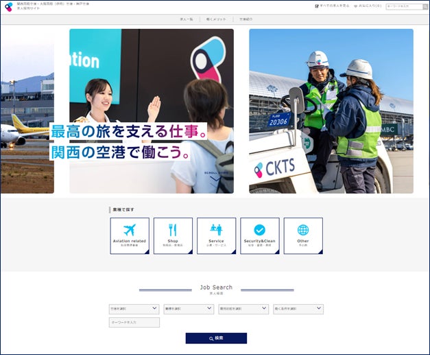 同ホームページでは、関西3空港で募集中のさまざまな求人情報をご紹介し、空の玄関口である空港のお仕事と出会えるようにコンテンツを充実させてまいります。