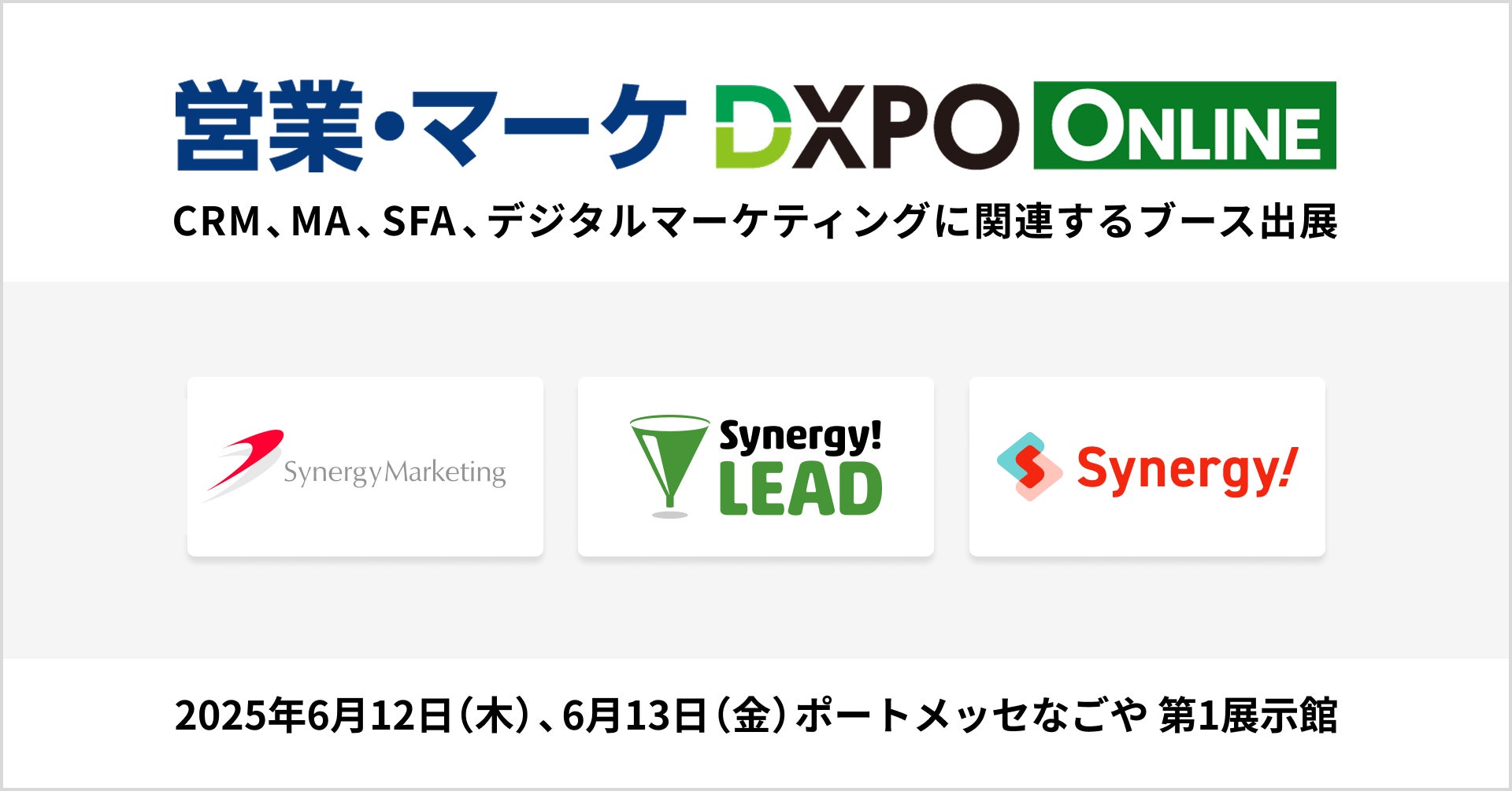シナジーマーケティング株式会社(所在地:大阪市北区、代表:奥平 博史、以下:当社)は、2025年6月12日(木)〜13日(金)にわたりポートメッセなごやにて初開催される「営業・マーケDXPO名古屋’25」に出展いたします。
