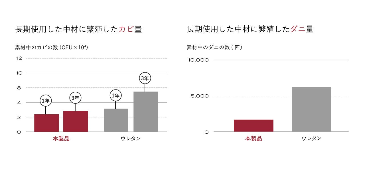 本製品はJIS規格の基準8万回の圧縮でも高い耐久性を実証。長期間の使用でも安定した寝心地が続きます。