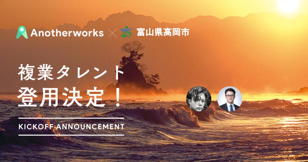 地方創生を推進する複業マッチングプラットフォーム「複業クラウド for Public」を展開する株式会社Another works(本社:東京都渋谷区、代表取締役:大林 尚朝)は、2022年11月2日、富山県高岡市に複業人材を登用する実証実験において、即戦力の複業アドバイザー2名の参画が決定したことをお知らせいたします。