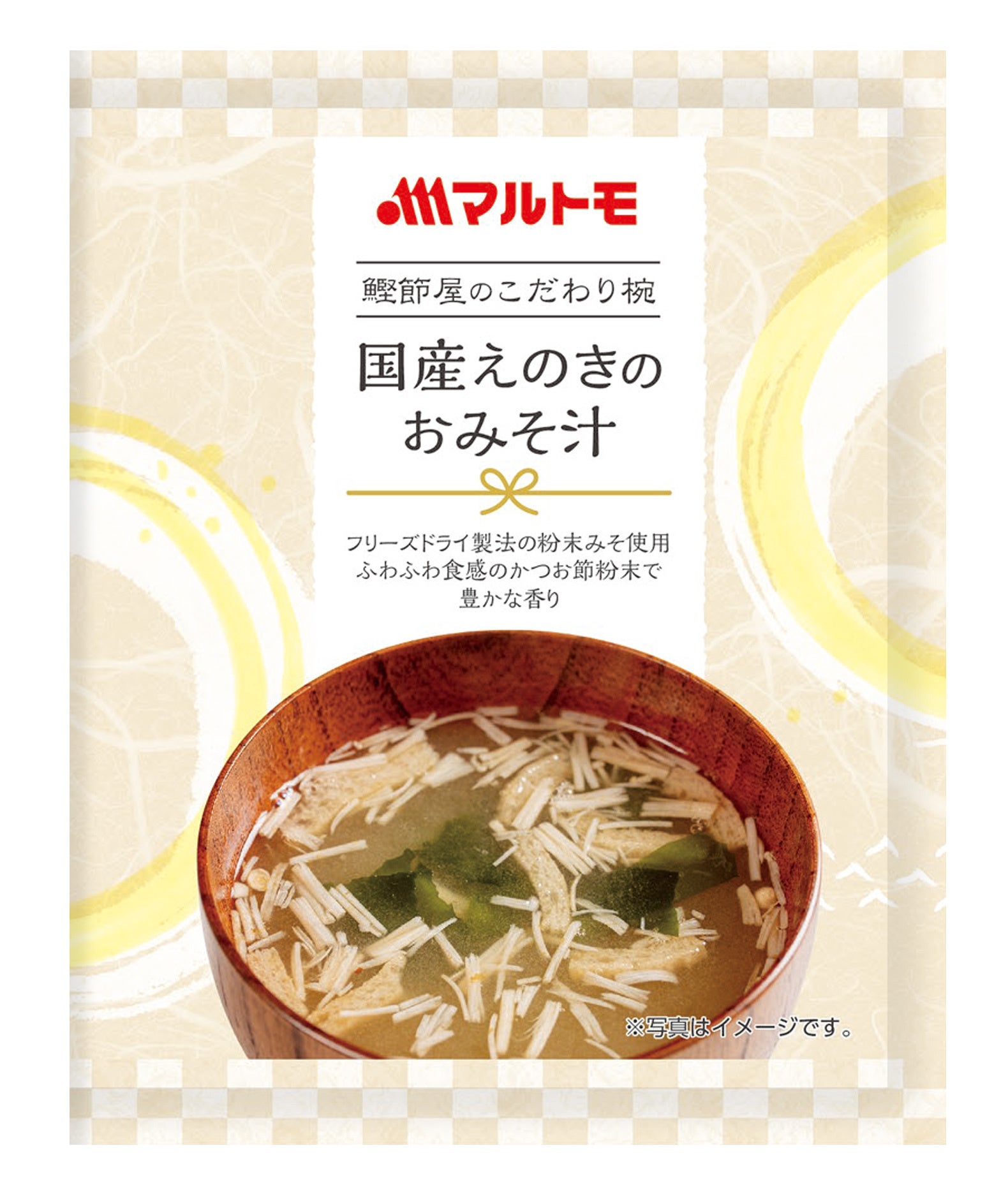 このたび、通販限定の新商品として発売するのは「国産玉ねぎのおみそ汁」「国産えのきのおみそ汁」「国産三つ葉とかきたまのお吸物」の3種です。国産の具材を厳選し、フリーズドライ製法の粉末みそと卵を使用しました。また、だし素材として国内製造かつお荒節の粉末を使用し、豊かな香りとだし感にこだわりました。お湯にサッと溶ける粉末タイプなので、忙しい朝でも簡単・手軽にいただけます。ブロックタイプとは違い、コンパクトに持ち運べるためお弁当と一緒にランチにもおすすめ!パッケージは水引が入ったかわいらしいデザインで、ちょっとしたギフトにもご活用いただけます。