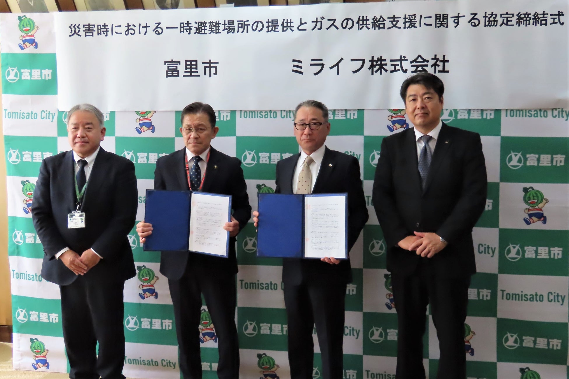 ミライフは、千葉県富里市と「災害時における一時避難場所の提供とガスの供給支援に関する協定」を締結