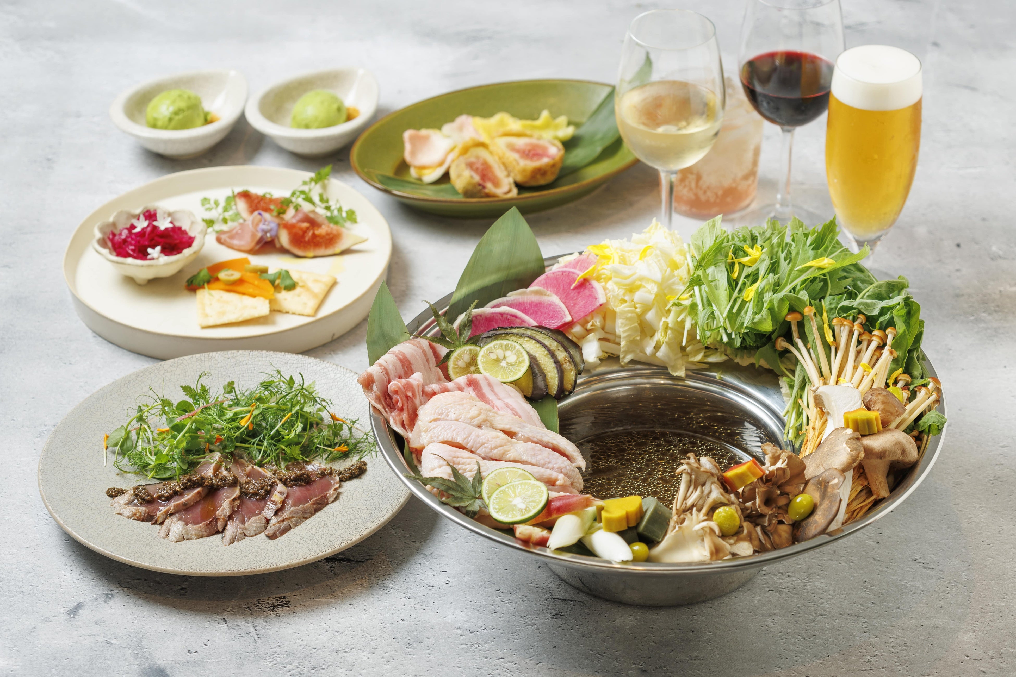 ・前菜3種盛り合わせ ・カツオのカルパッチョ タプナード ハーブ添え ・いちじくの天ぷら、海老せんべい ・トロトロの豚角煮と、野菜のセイロ蒸し 自家製饅頭(マントウ)付き ・食後のデザート ・ビール、ワイン、カクテルなどのフリーフロー90分付き |