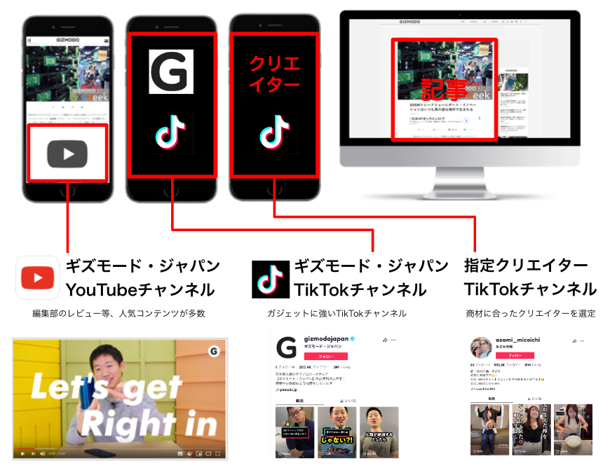 また縦型ショート動画のタイアップのほか、ギズモード・ジャパンとStar Creationのコラボレーションメニューとして、ガジェット商材に強い縦型ショート動画+横型動画メニューの販売を開始。