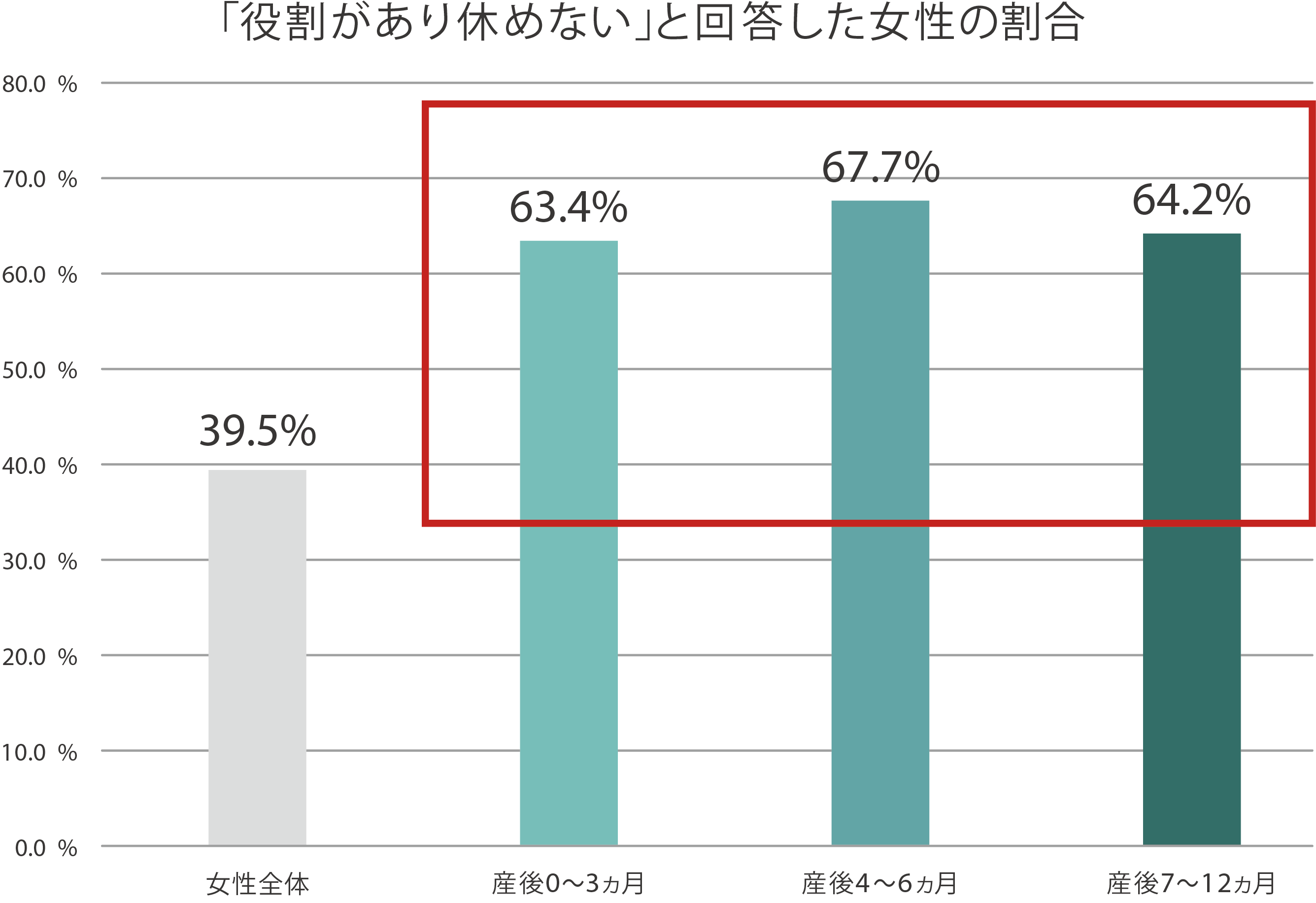 ■調査データ:産後の女性、女性全体と比較して約20%も高い「休めない」の声